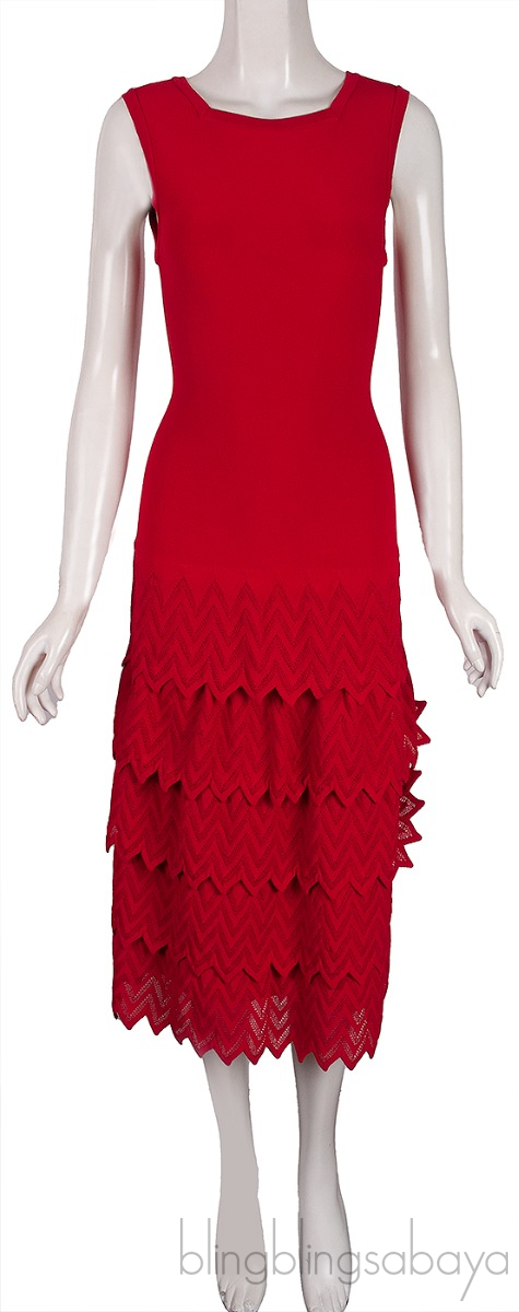 This Red Layered Knit Sleeveless Dress from Alaia is crafted from 78% Viscose, 16% Polyester, 4% polyamide and 2% Elastane. This dress features a square neckline, sleeveless, zip fastening at rear, mid length hem with layered skirt.