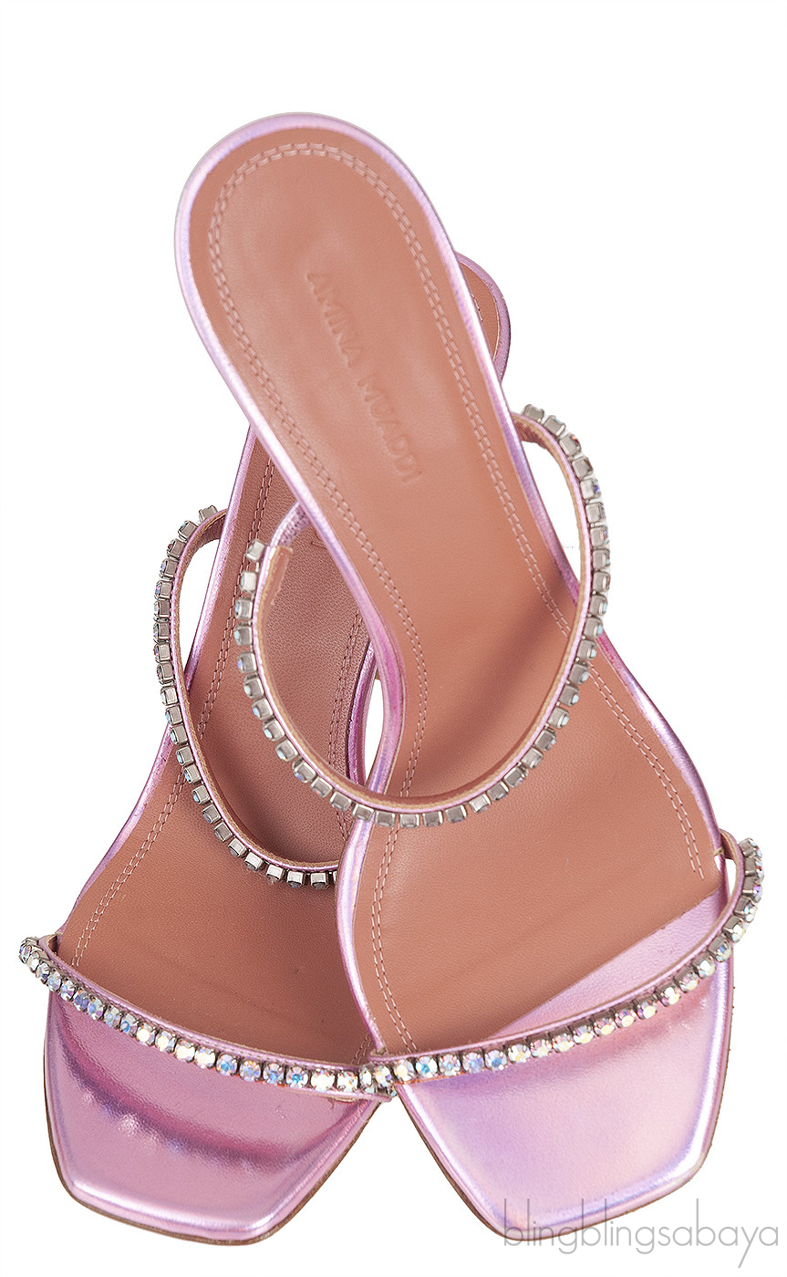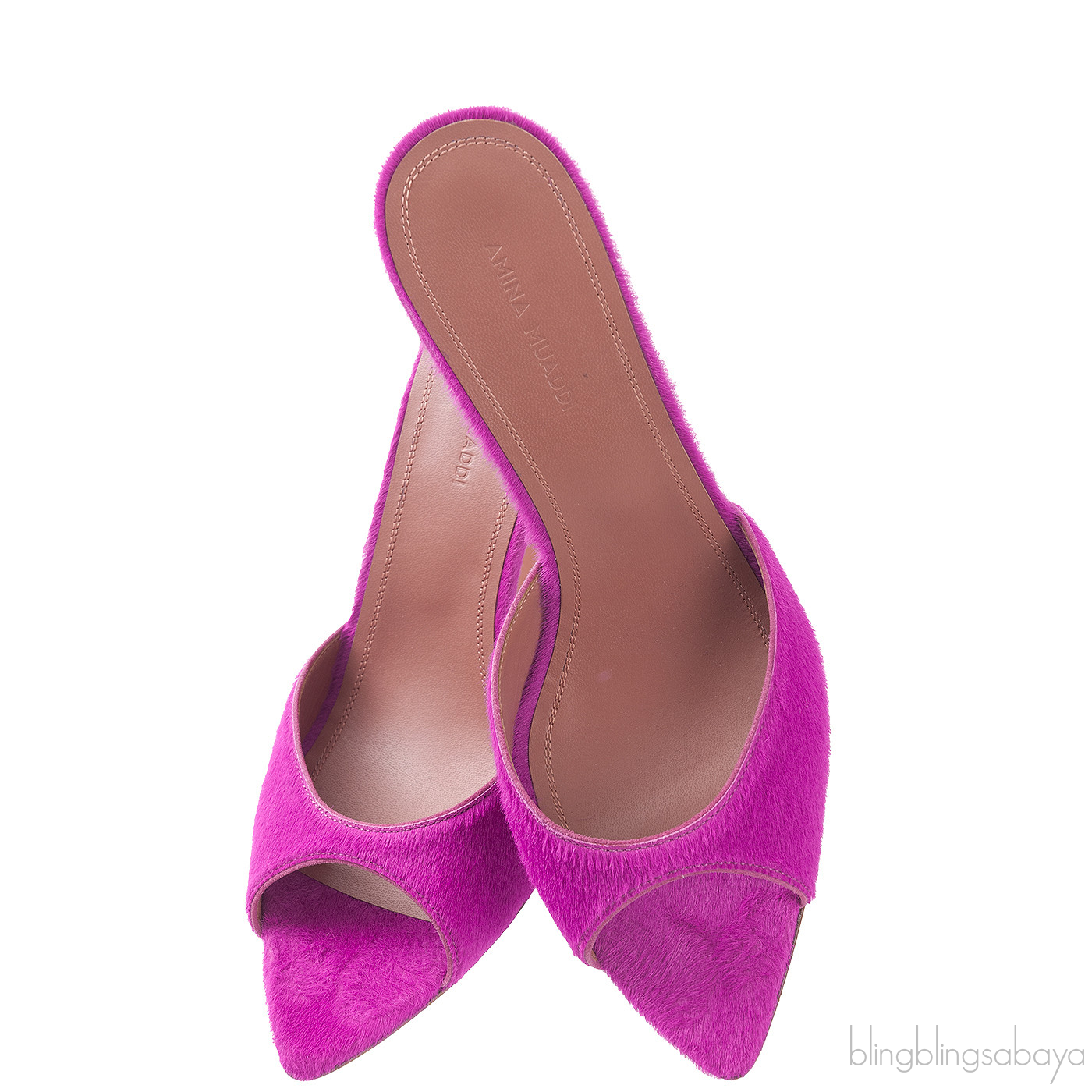 Amina Muaddi Magenta Pony Hair Caroline Sandals