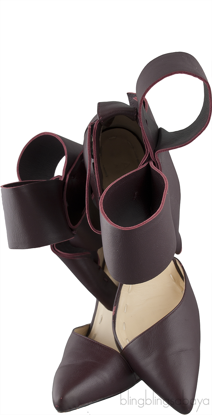 Burgundy Bow Leather Pump from Aminah Abdul Jillil!