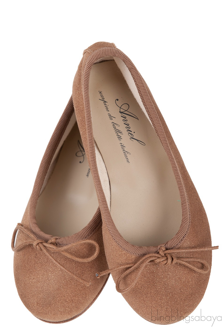 Brown Kids Ballet Flats from ANNIEL!These Brown Kids Ballet Flats from Anniel are crafted from glittery fabirc upper in brown hue. These ballet for kids features a round almond toe with cute bow tie at vamp, leather lined insole and sole.