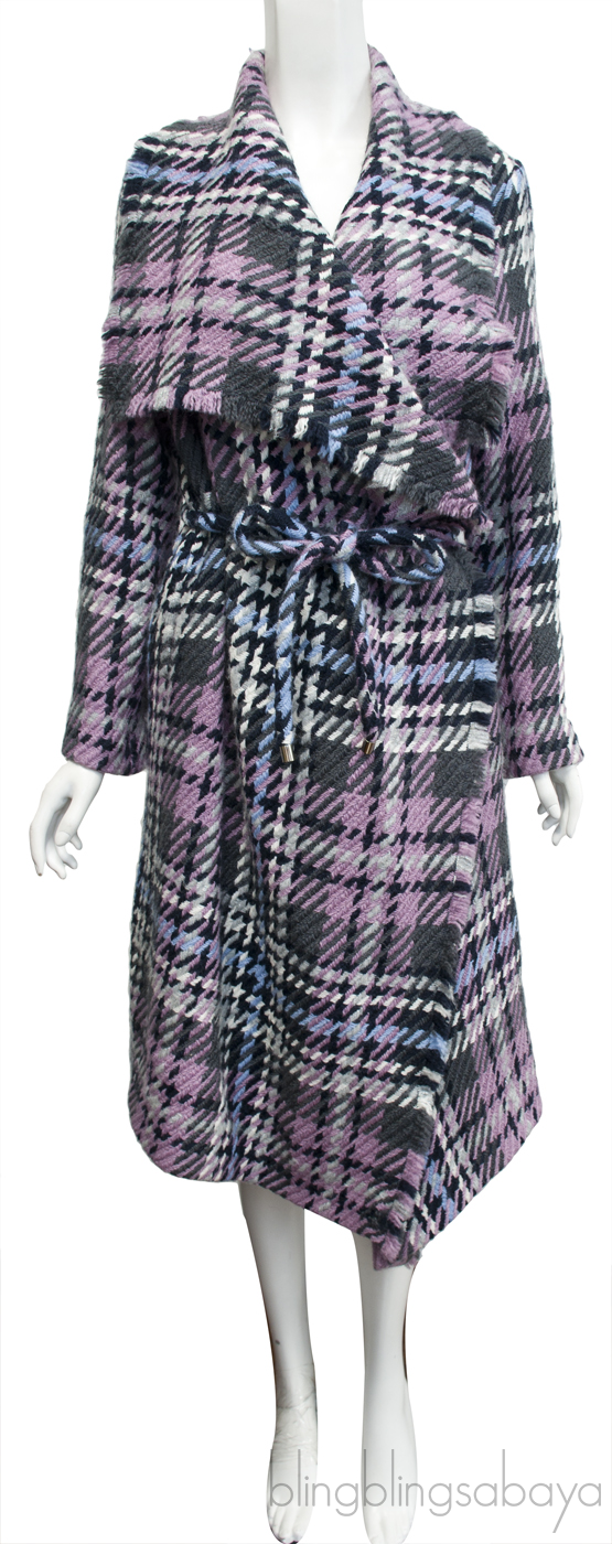 This Multi-color Knitted Coat from Carolina Herrera features a multi-colored knitted fabric with checkered motif. Featuring a wide collar, long sleeves, snap fastening at front, belt at waist and fringed or raw edges.