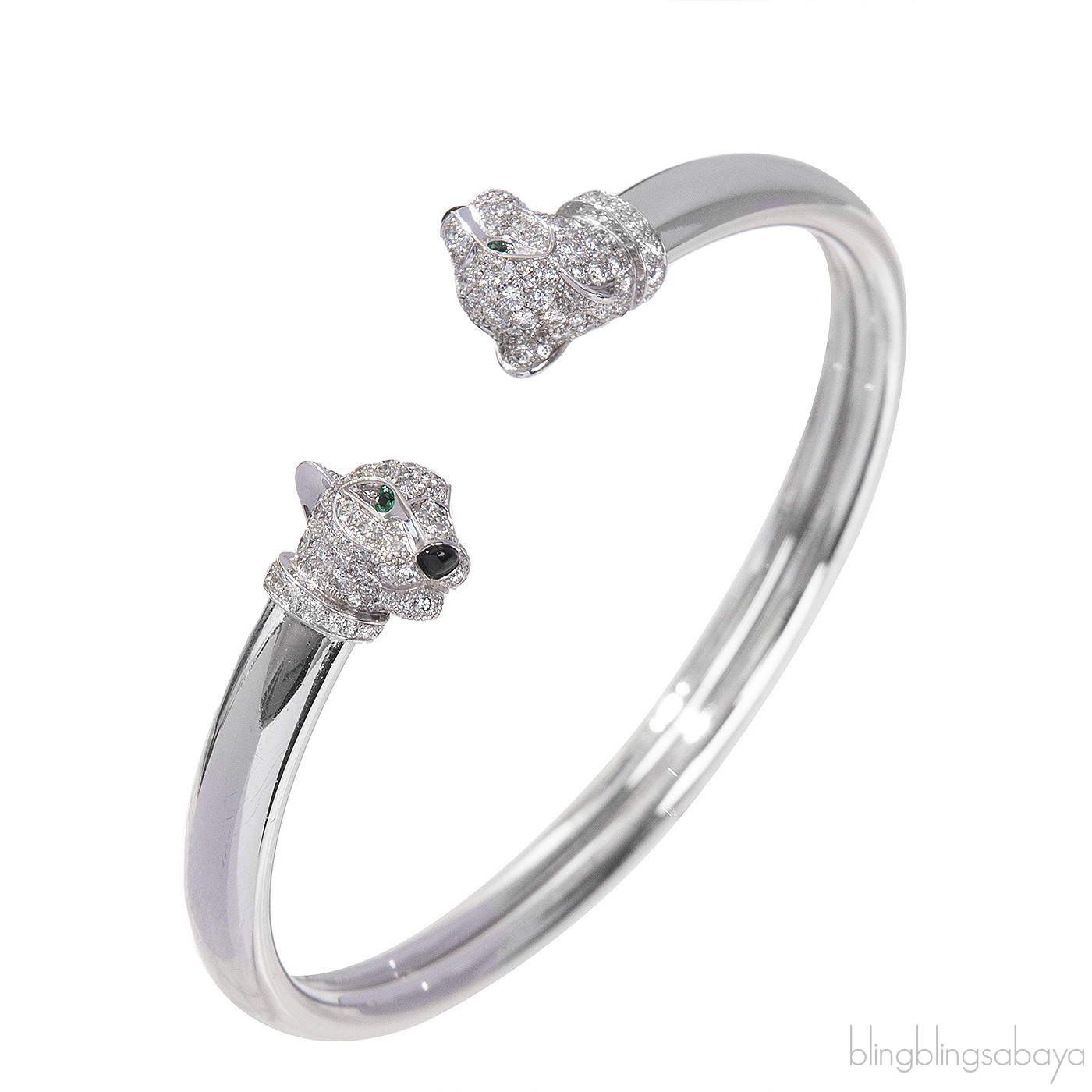 Panthere White Gold Emerald Onyx Diamond De Cartier Bracelet