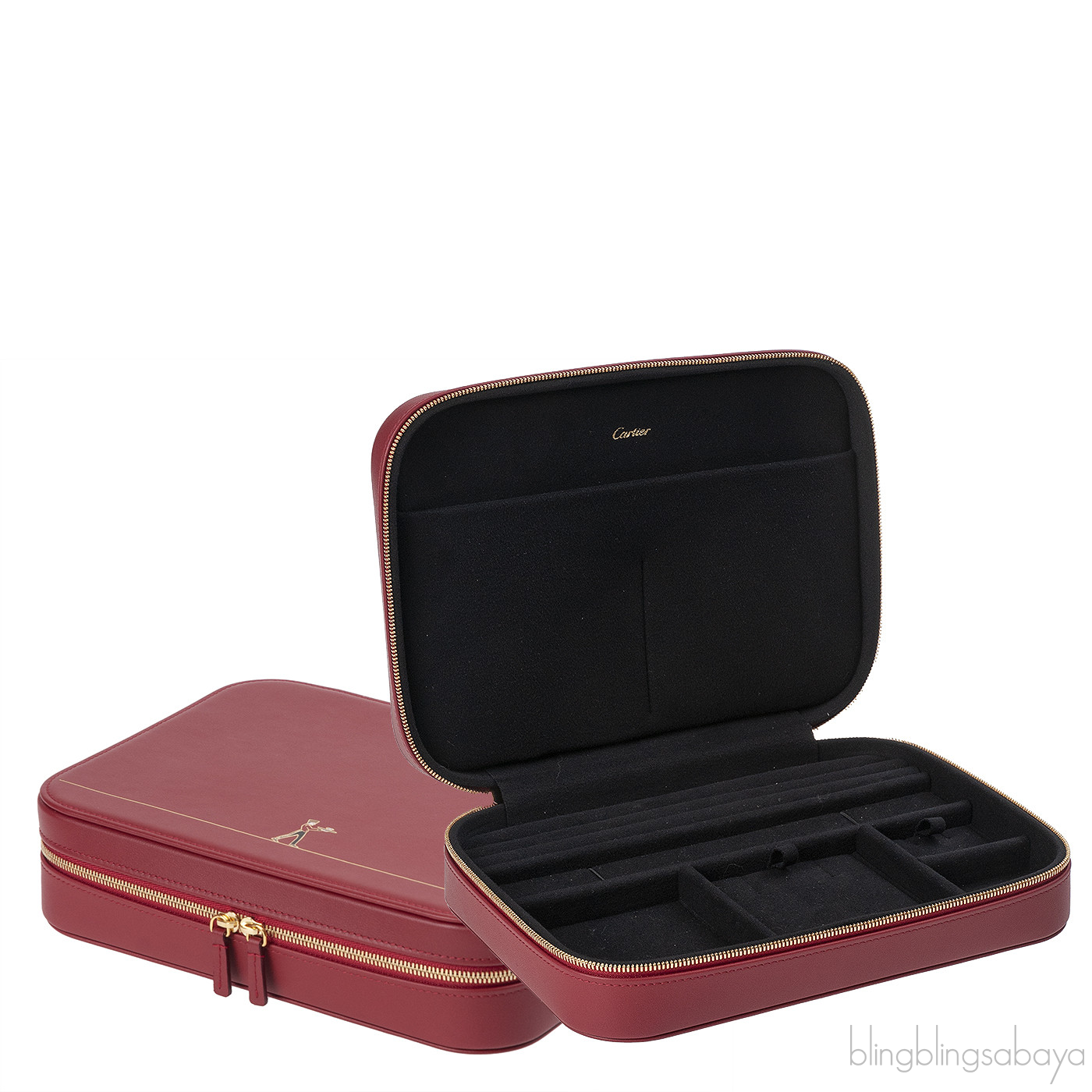 Cartier Travel Jewelery Box Leather Diabolo Red