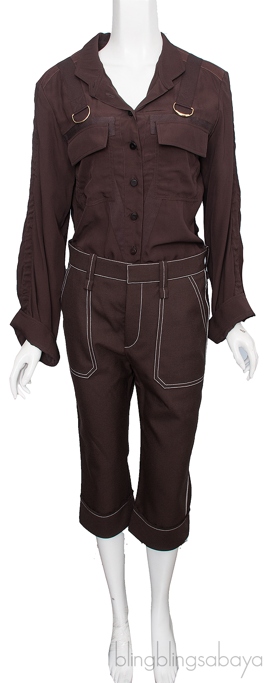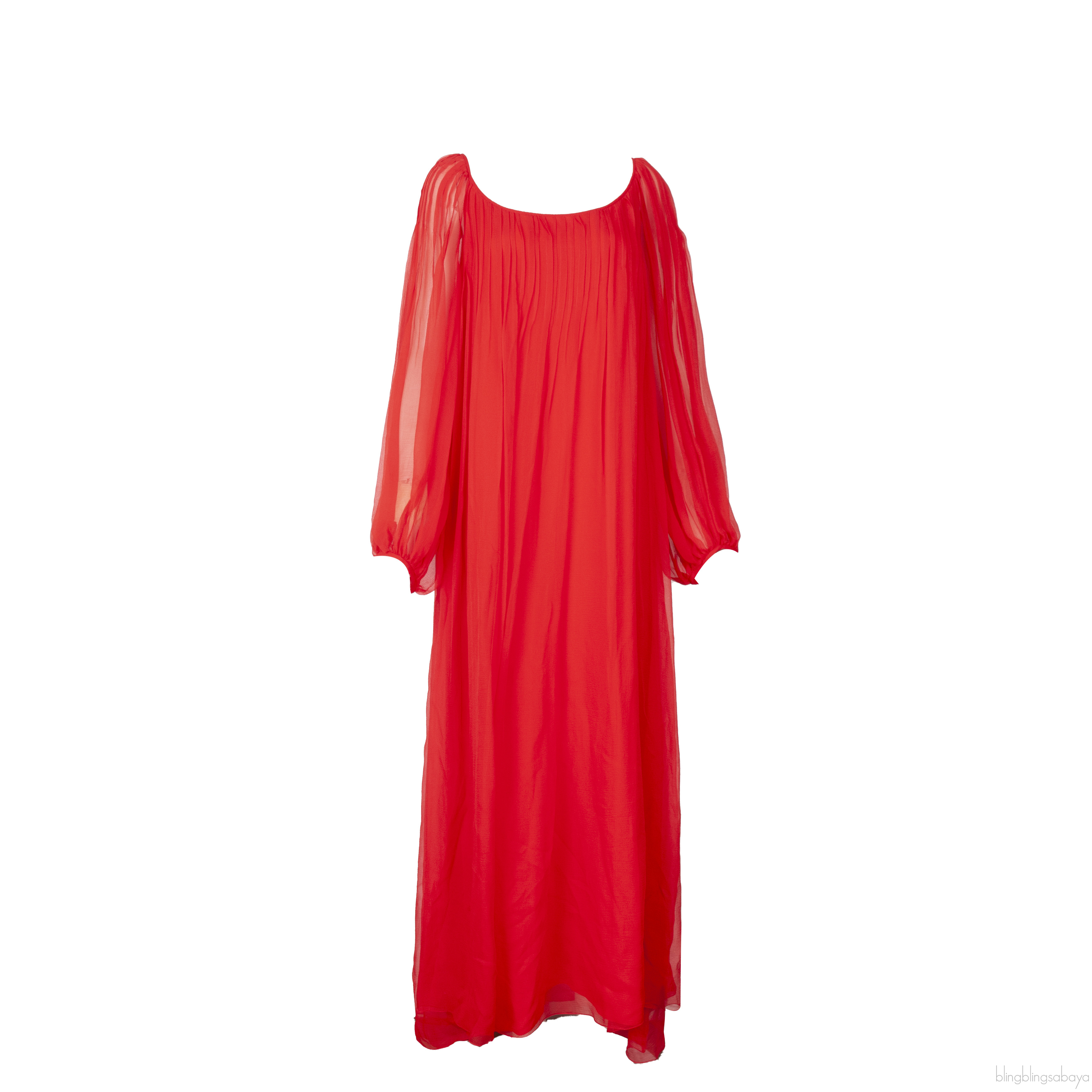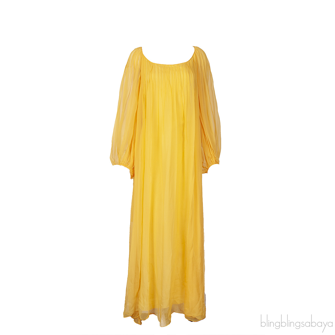 Dark Honey Pleated Silk Mousseline Maxi Dress