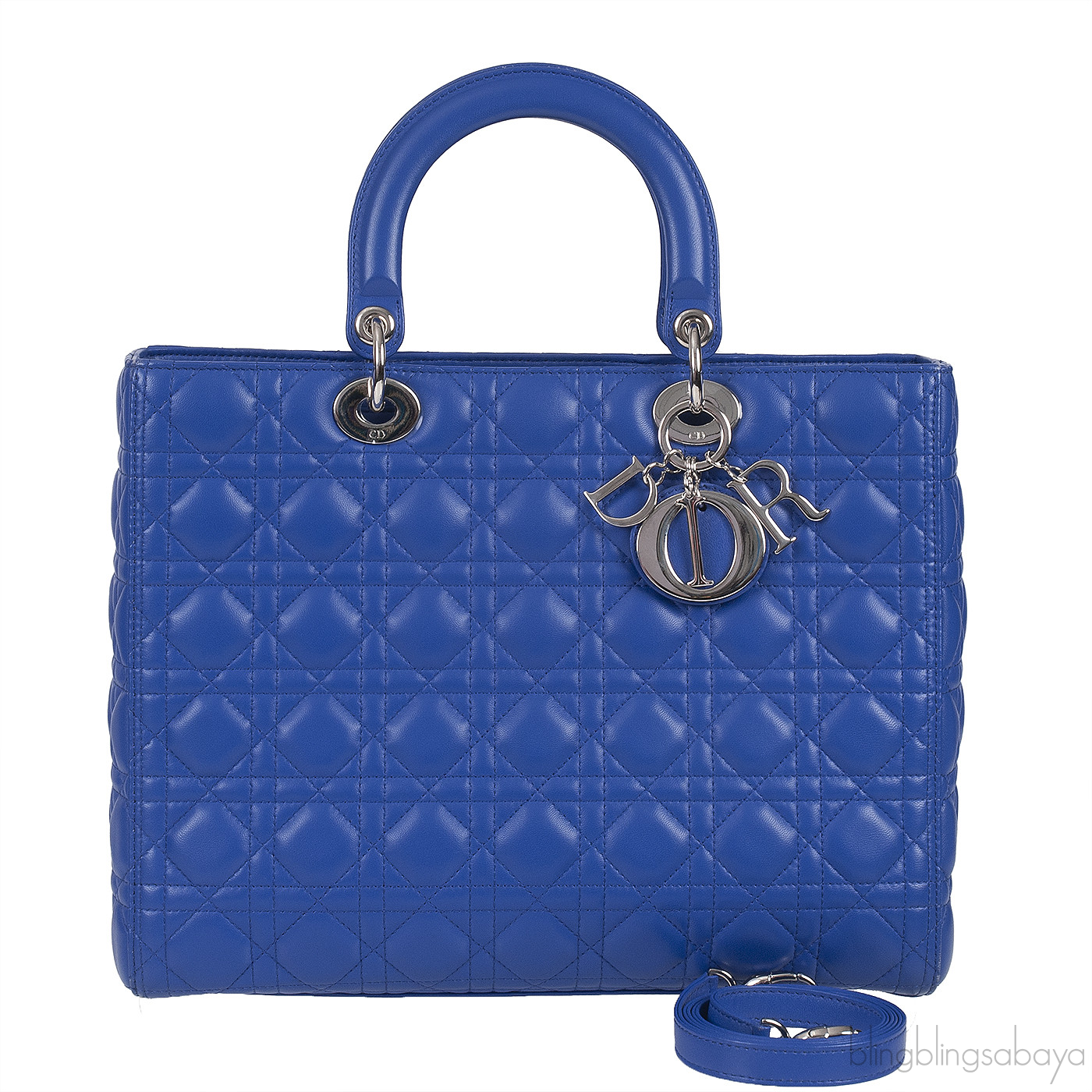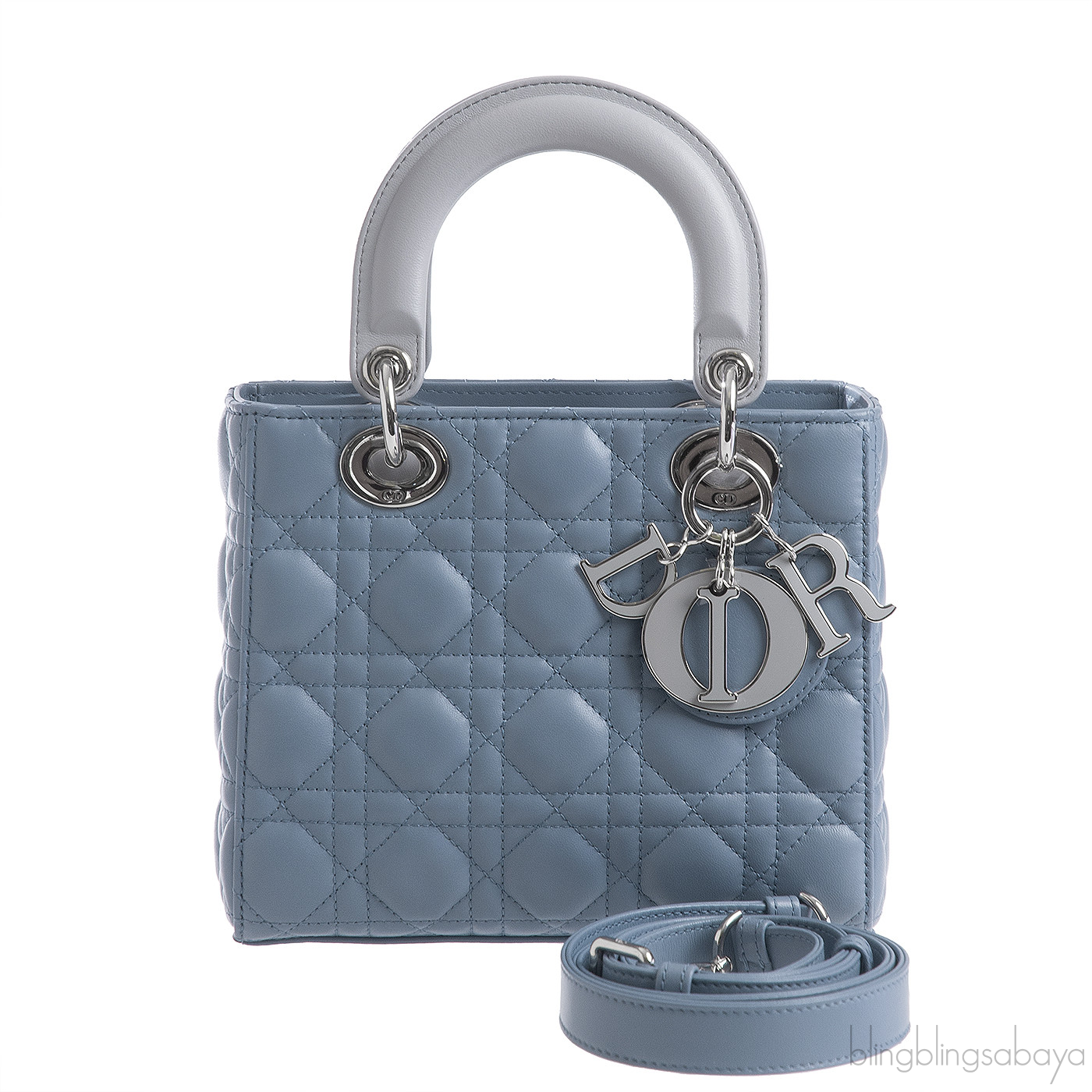 Christian Dior Lady Dior Two Tone Slate Blue And Grey Cannage Shoulder Bag