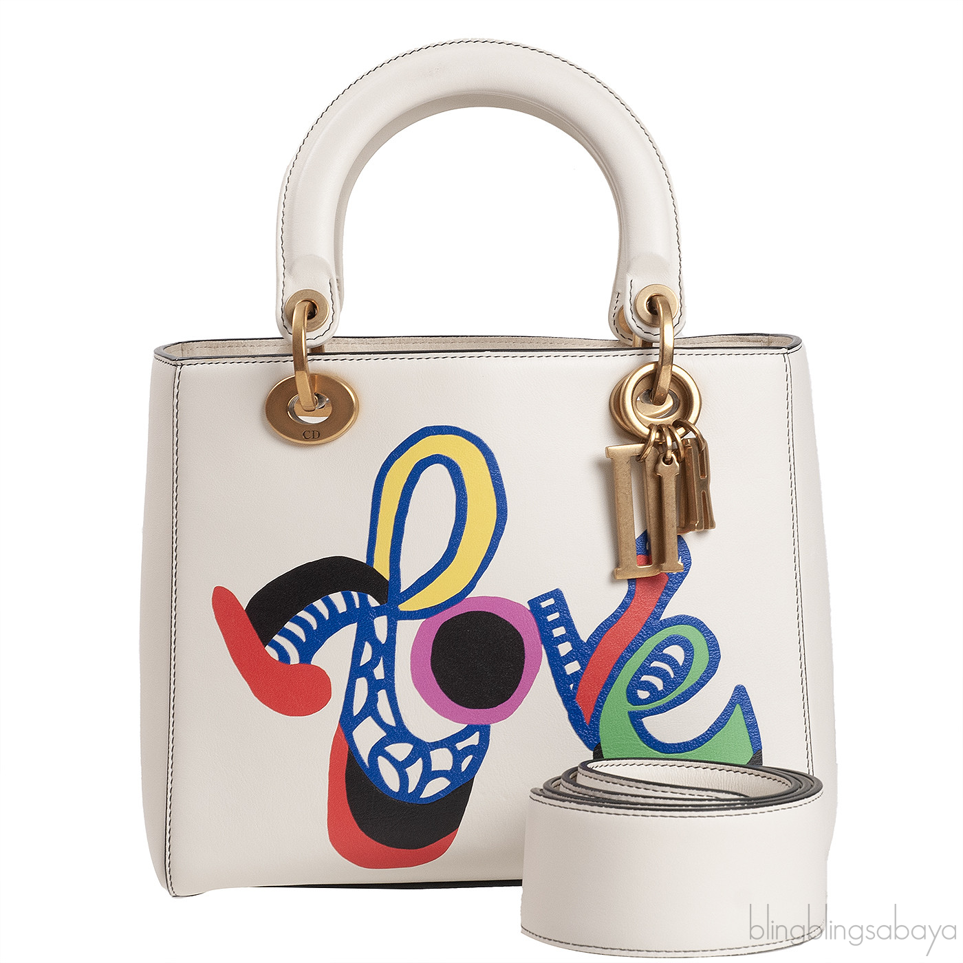Off-White Lady Dior Calfskin Niki De Saint Phalle Love Medium Supple Bag