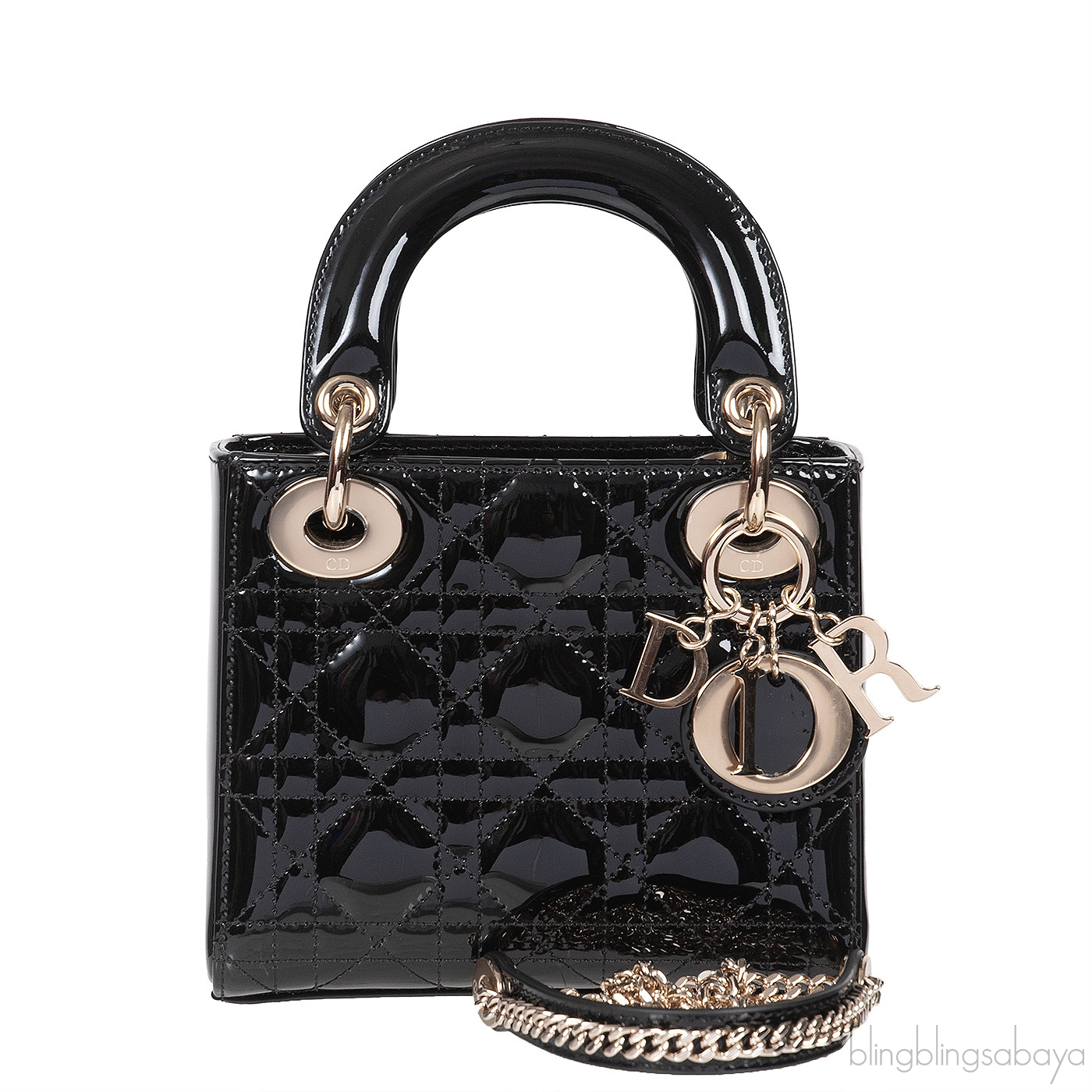 Lady Dior Mini Black Patent Quilted Leather GHW
