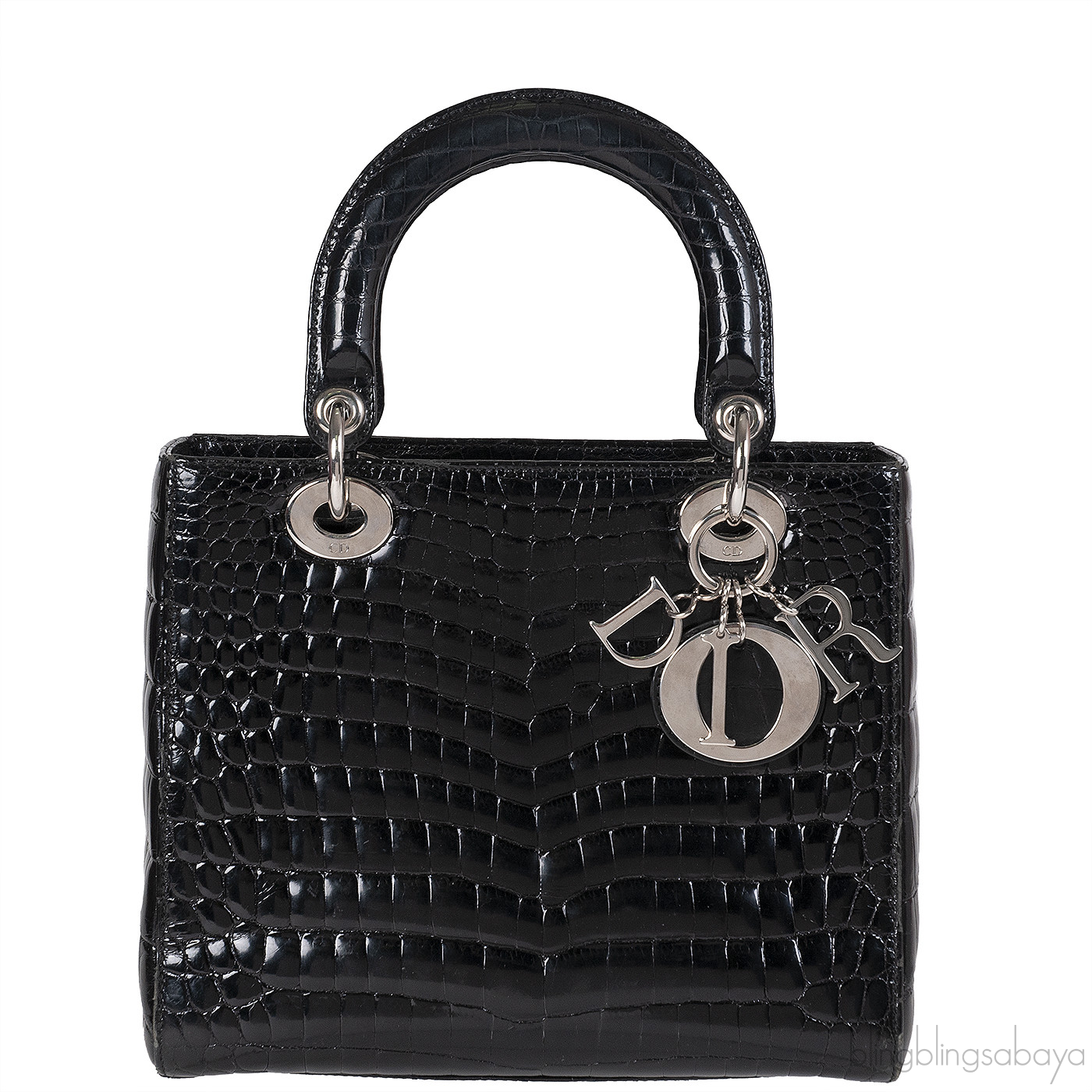 Christian Dior Lady Dior Black Medium Crocodile PHW