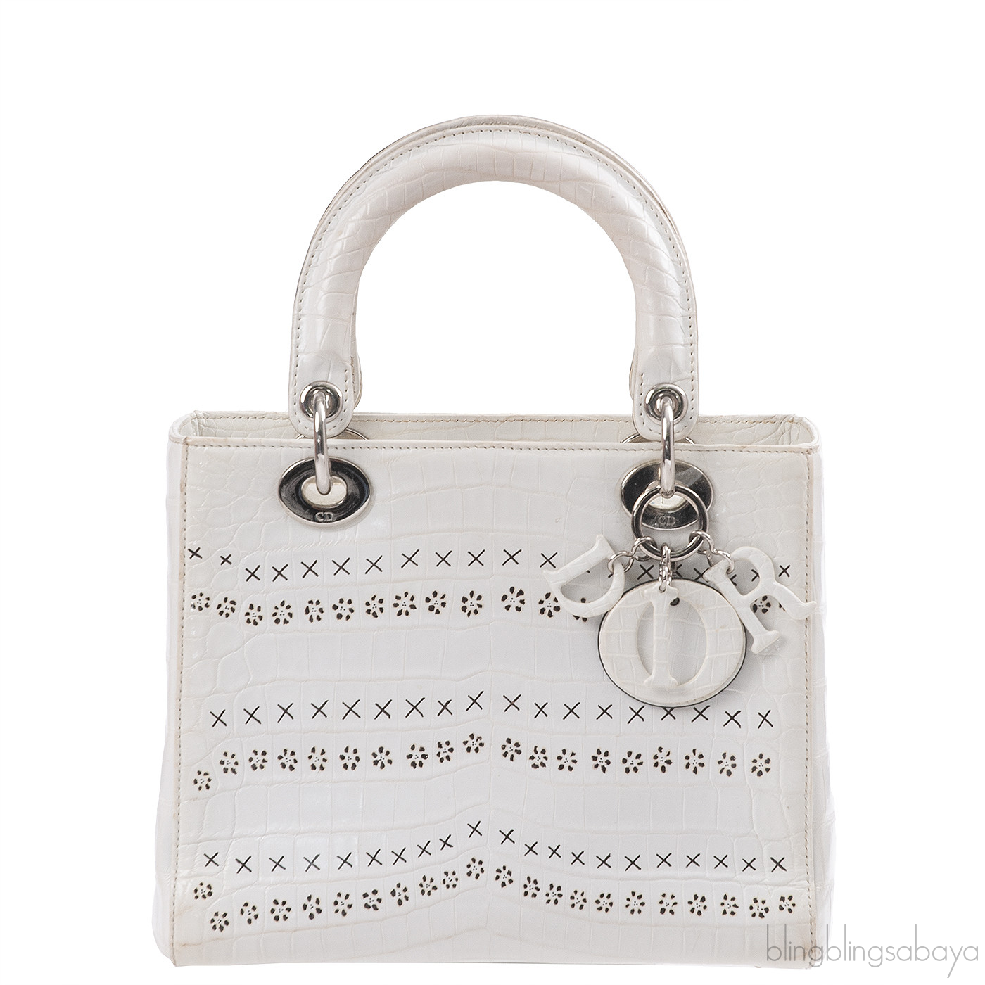 Christian Dior Lady Dior White Printed Crocodile Medium Bag