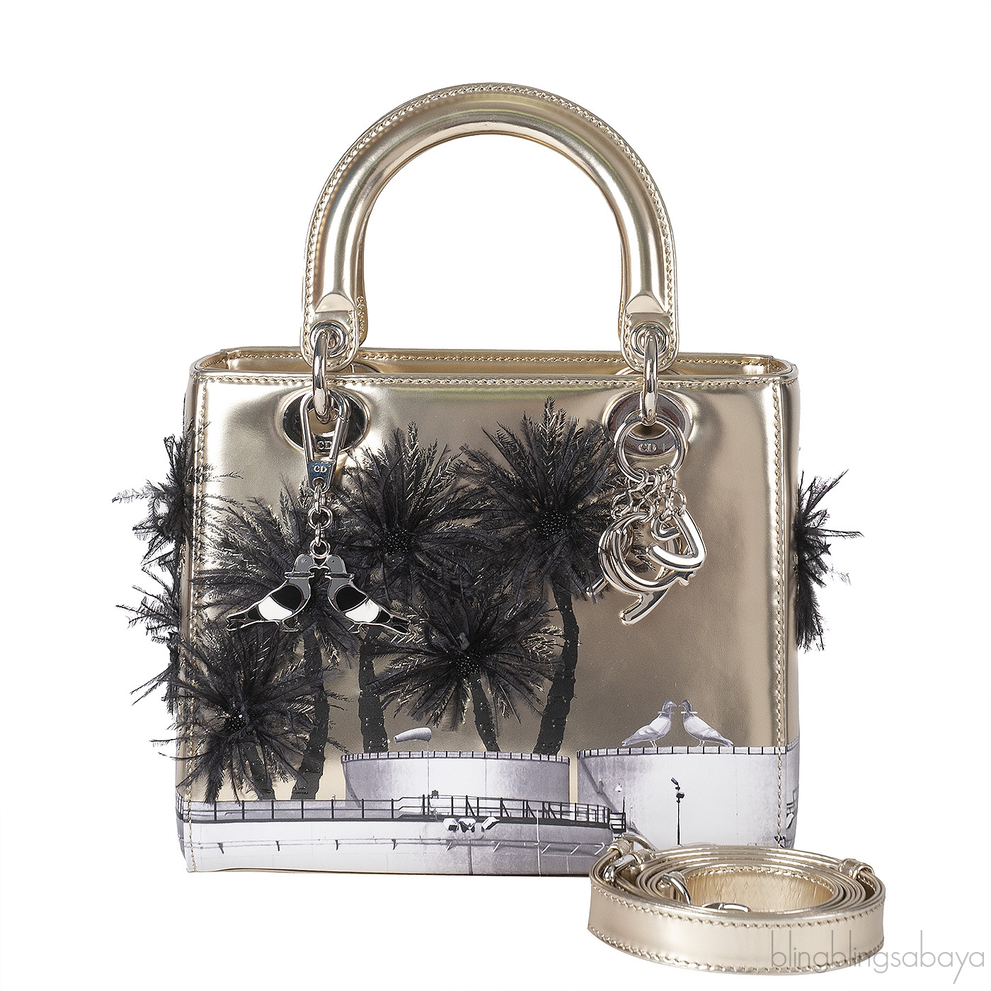 Christian Dior Lady Dior Art "Manal Aldowayan" Metallic Palm Art Bag