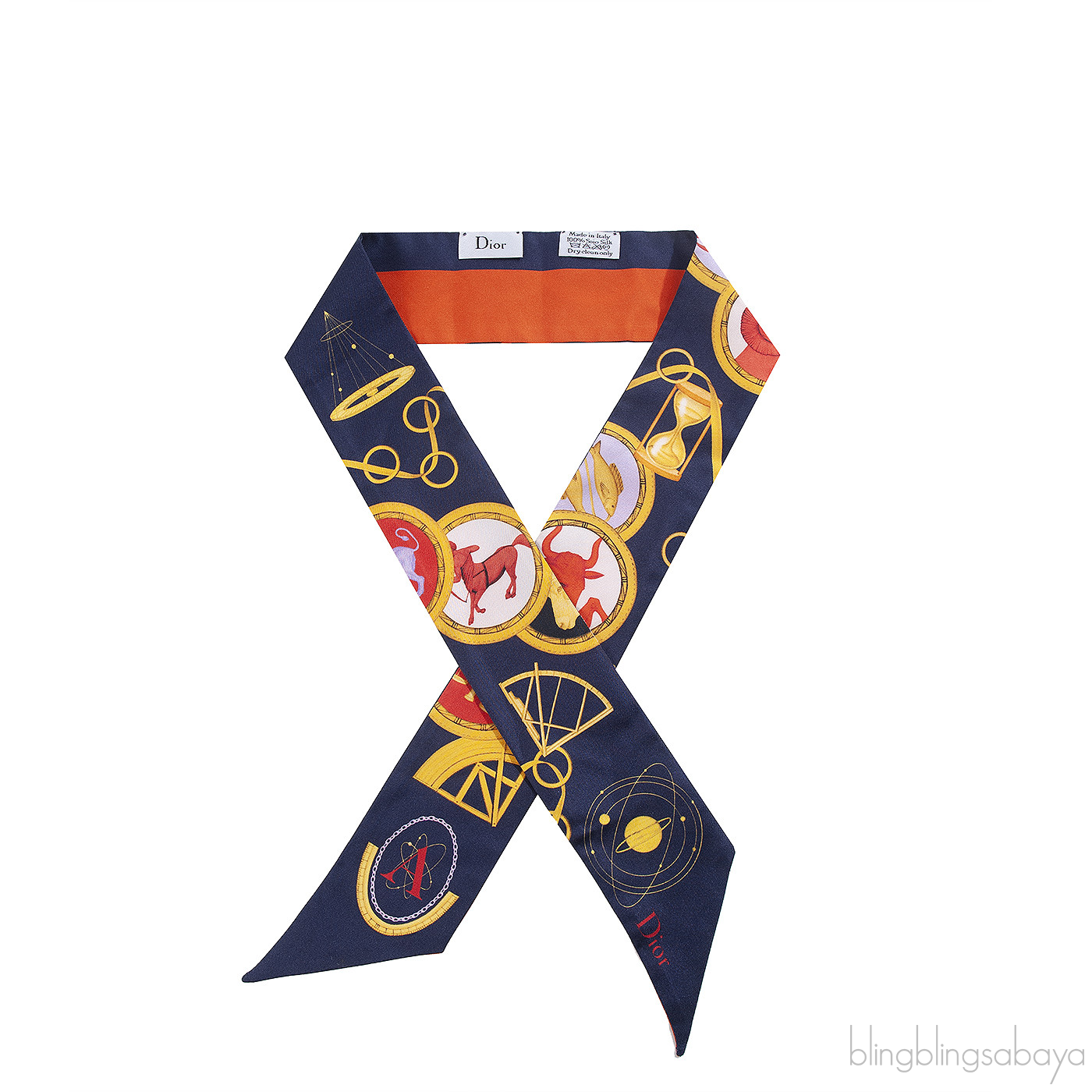 Christian Dior Silk Multicolor Zodiac Print Twilly