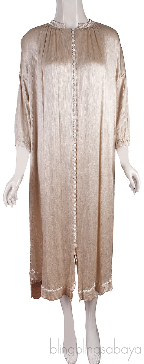 This Metallic Light Gold Button Front Dress from Co.is crafted from 100% Viscose in metallic light gold. This dress features a chinese collar, button fastening through the front, long sleeves, self-tie fastening at waist, and mid-length hem.