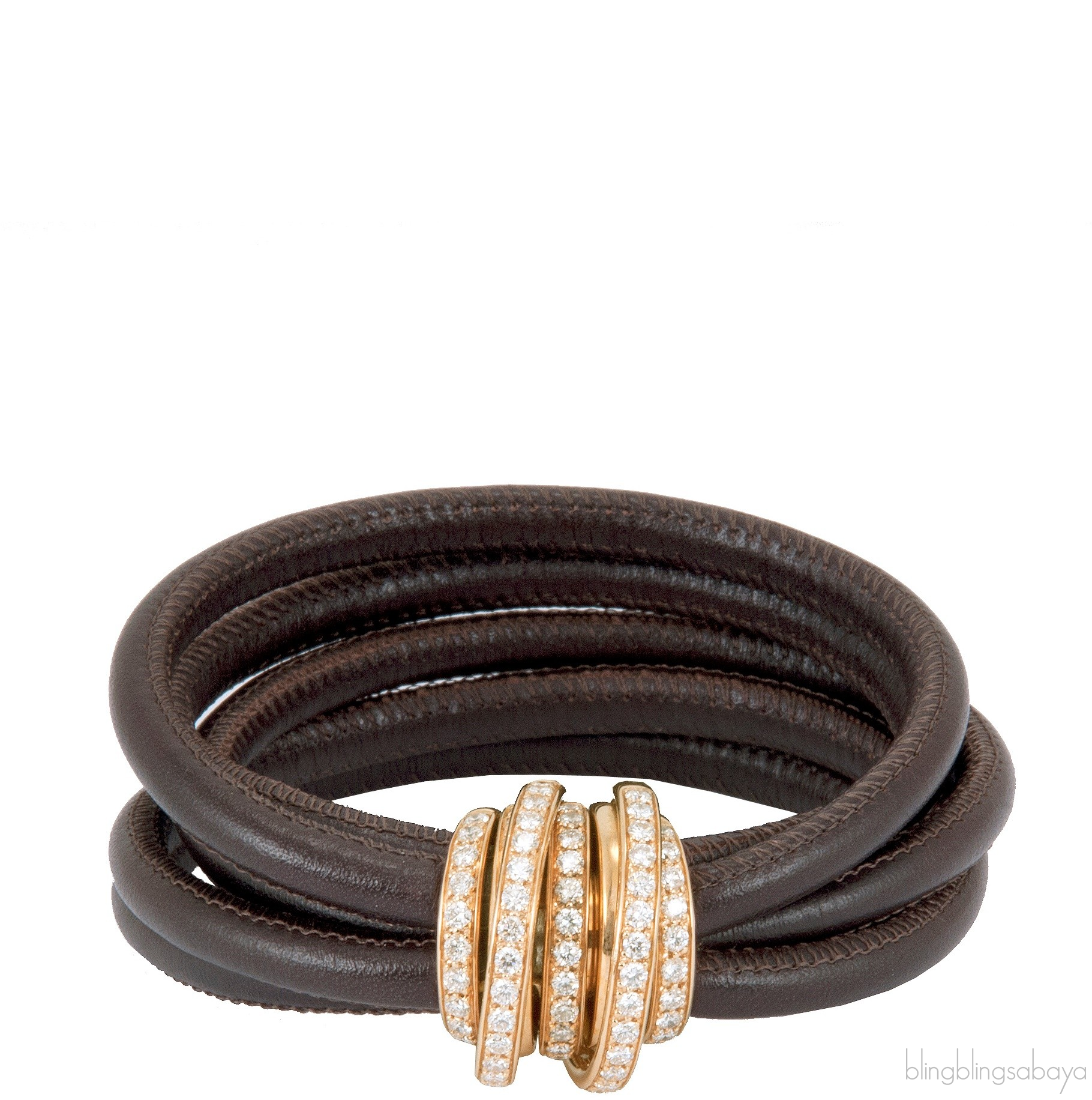 Named after the eldest daughter of fawaz Grouzi, this precious Allegra Diamond Cord Bracelet from de Grisogono New Allegra Bracelet Collection is crafted in brown multi-cord leather bracelet with pink gold hardware weighing 20.80 gr. fully encrusted with precious 75 white diamonds in 2.36 ct. Bracelet measures 17 cm approximately.