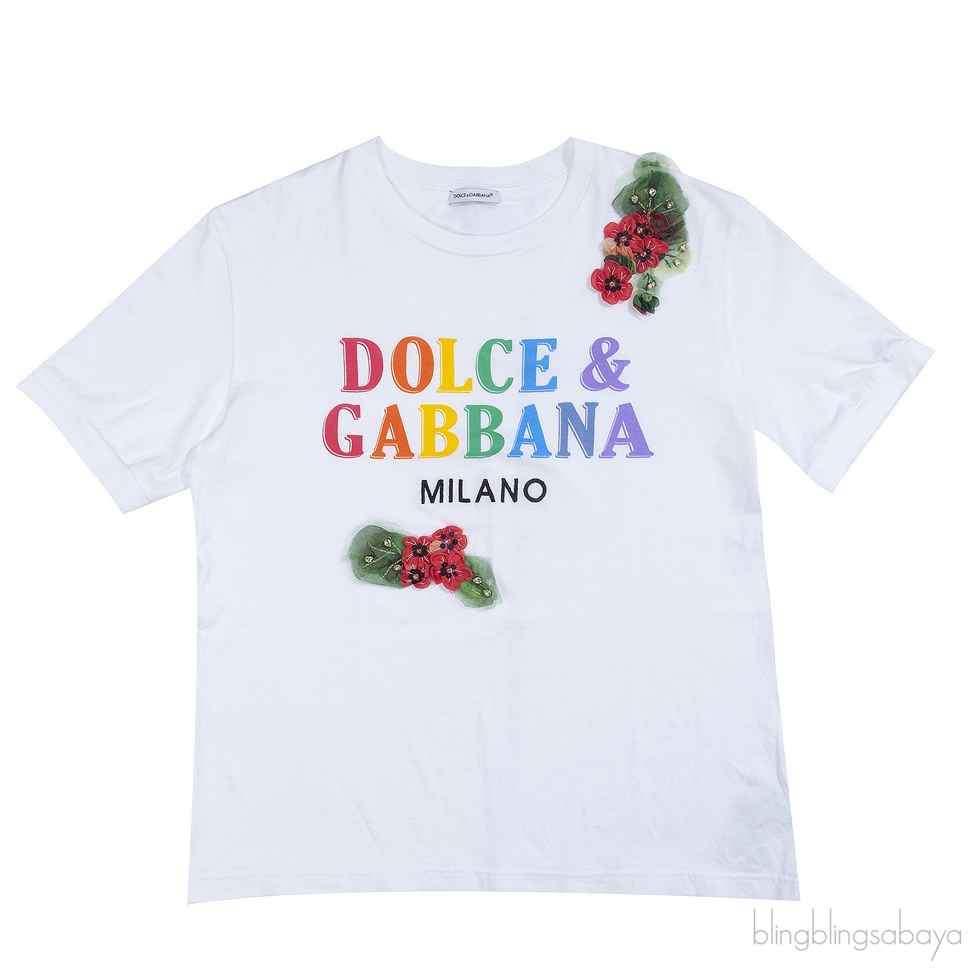 Dolce & Gabbana White Flower Patch Kids T-shirt!This Dolce & Gabbana White Flower Patch T-shirt for kids is crafted from 100% Cotton in White with multicolor print and flower patch at front, crew neck, short sleeves and pull-over.