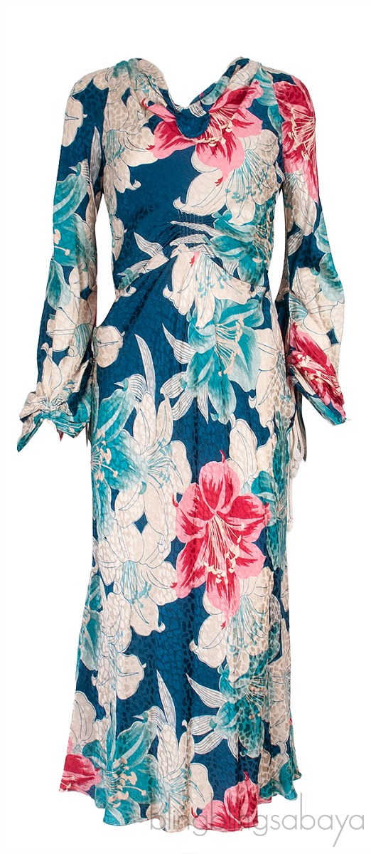 This Blue Floral Print Gathered Midi Dress from Etro is crafted in 100% Silk fabric featuring a floral print all-over, long sleeves with drawstring gathered cuffs, gathered at front, zip fastening on the side and midi length.