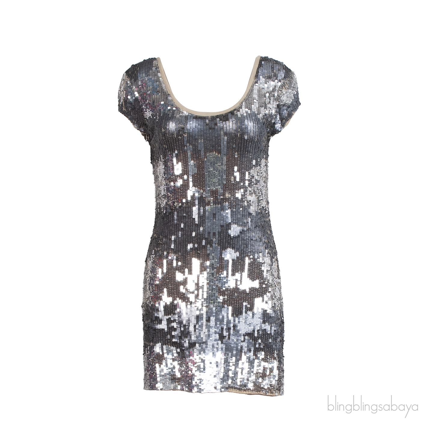 Fairly Silver Sequin Mini DressThis Fairly Silver Sequin Mini Dress is crafted from 100% Polyamide fully embellished with silver sequins, short sleeves, scoop neckline, pull-over style and mini length.