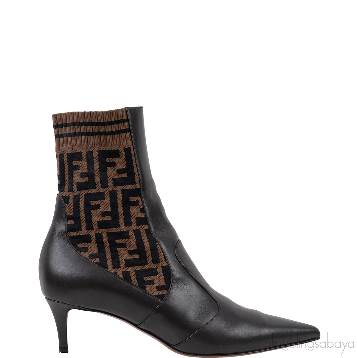 FF Brown Monogram Zucca Logo Print Kitten Boots