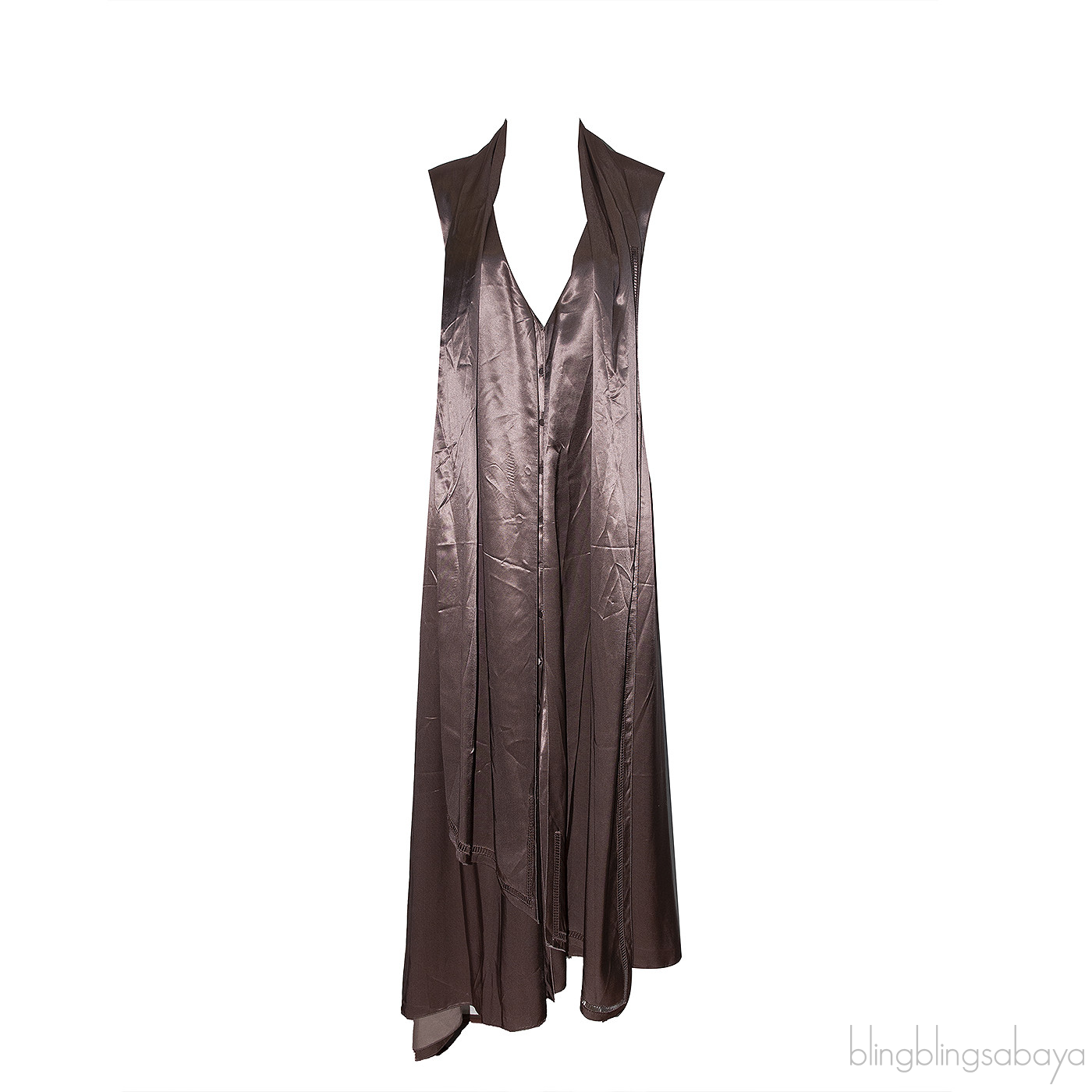 Asymmetric Draped Satin Dress Brown