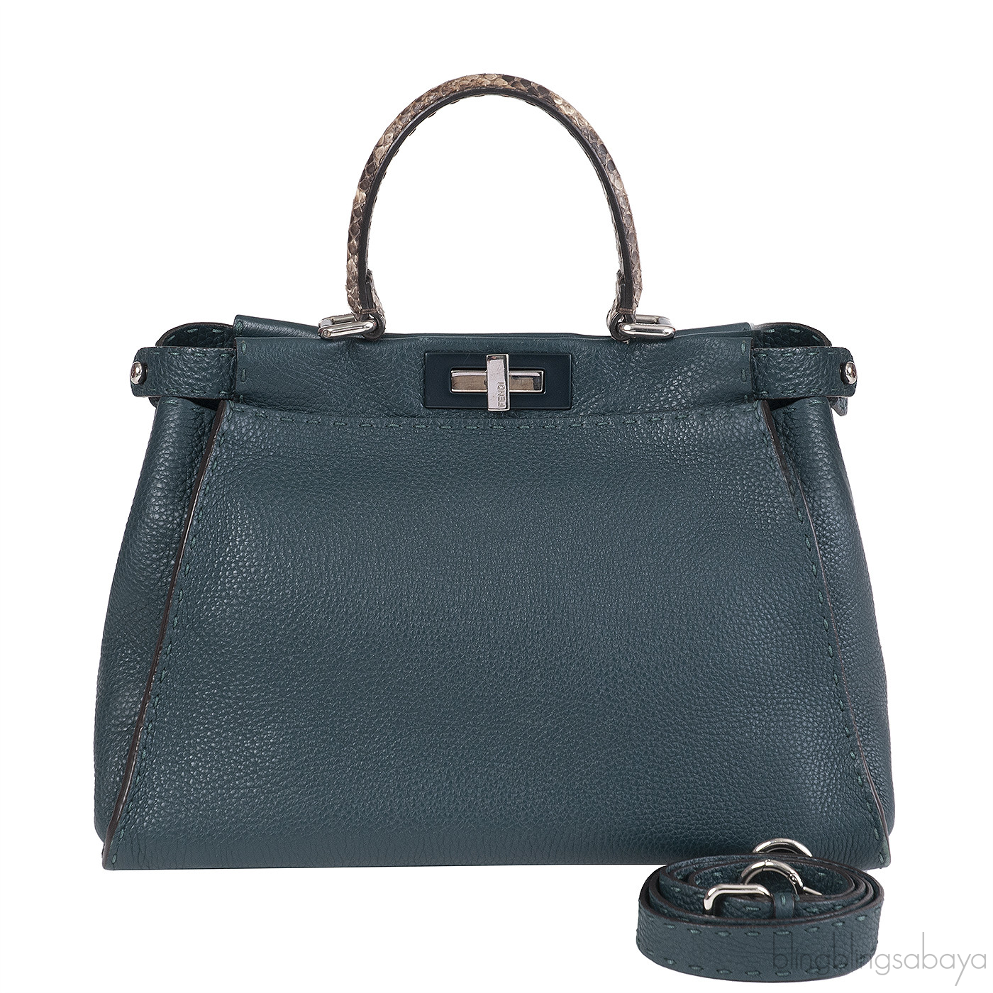 Fendi Selleria Peekaboo Dark Green Medium Python Handle Bag