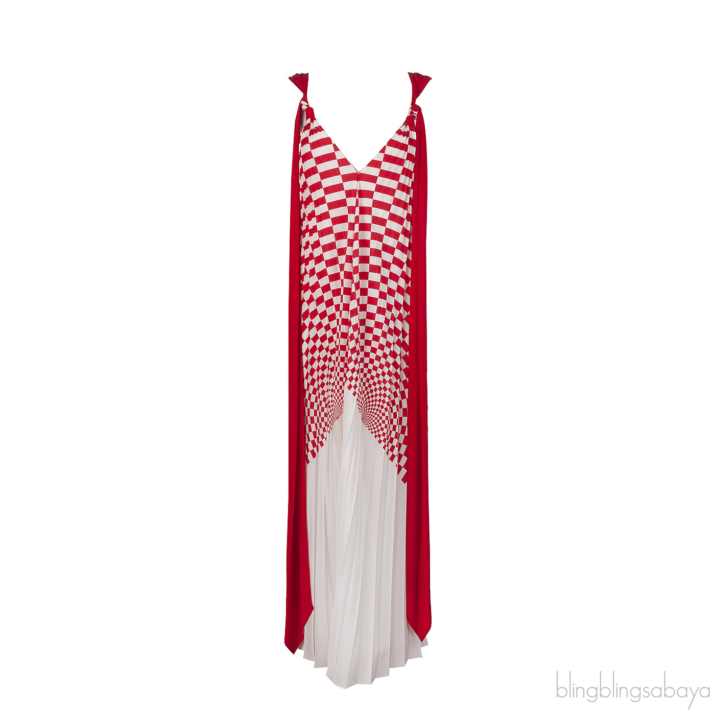 Fendi Red and White Checkered Pleated Midi Dress