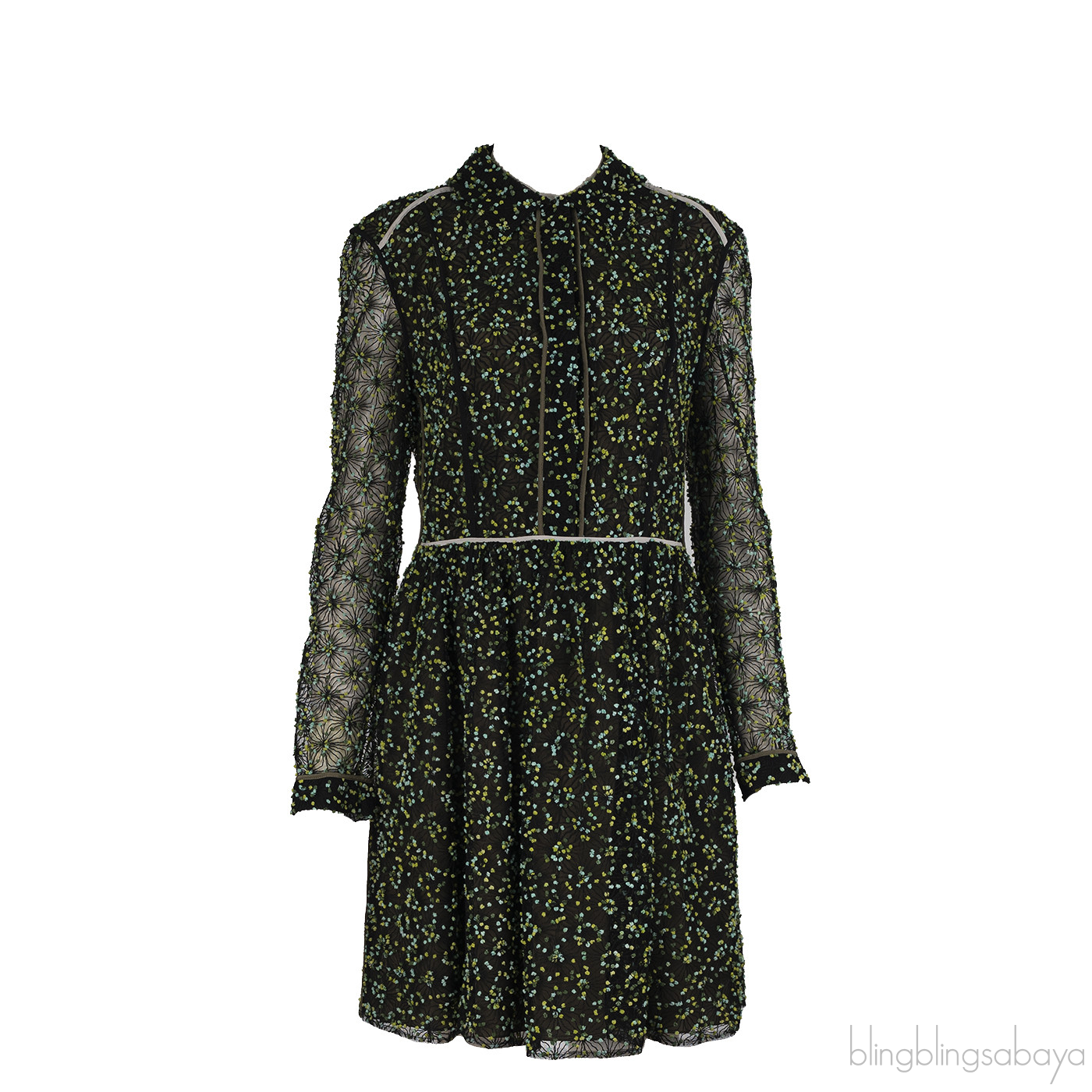 Fendi Green Embellished Long Sleeve Mini Dress M