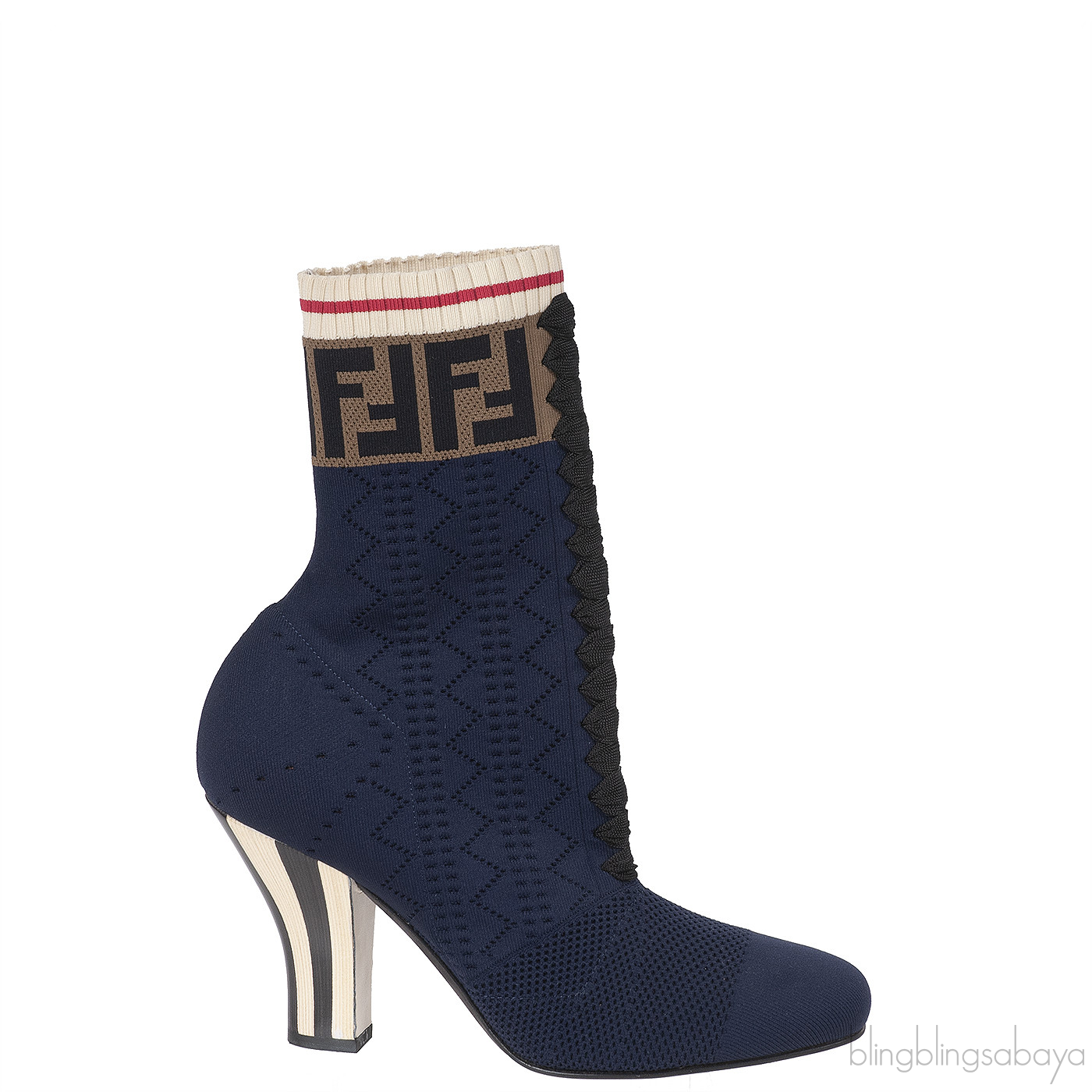 Fendi Zucca FF Logo Navy Blue Knit Boots
