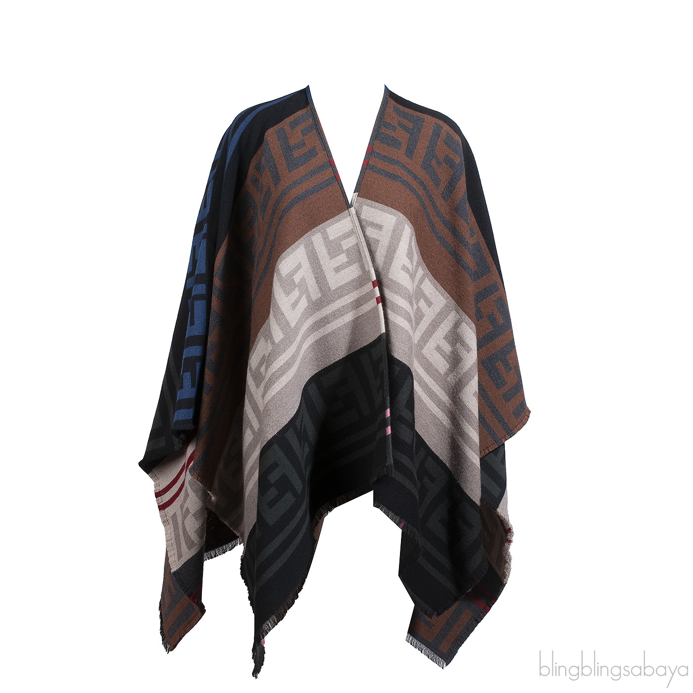 Fendi Multicolor FF Pattern Wool Poncho
