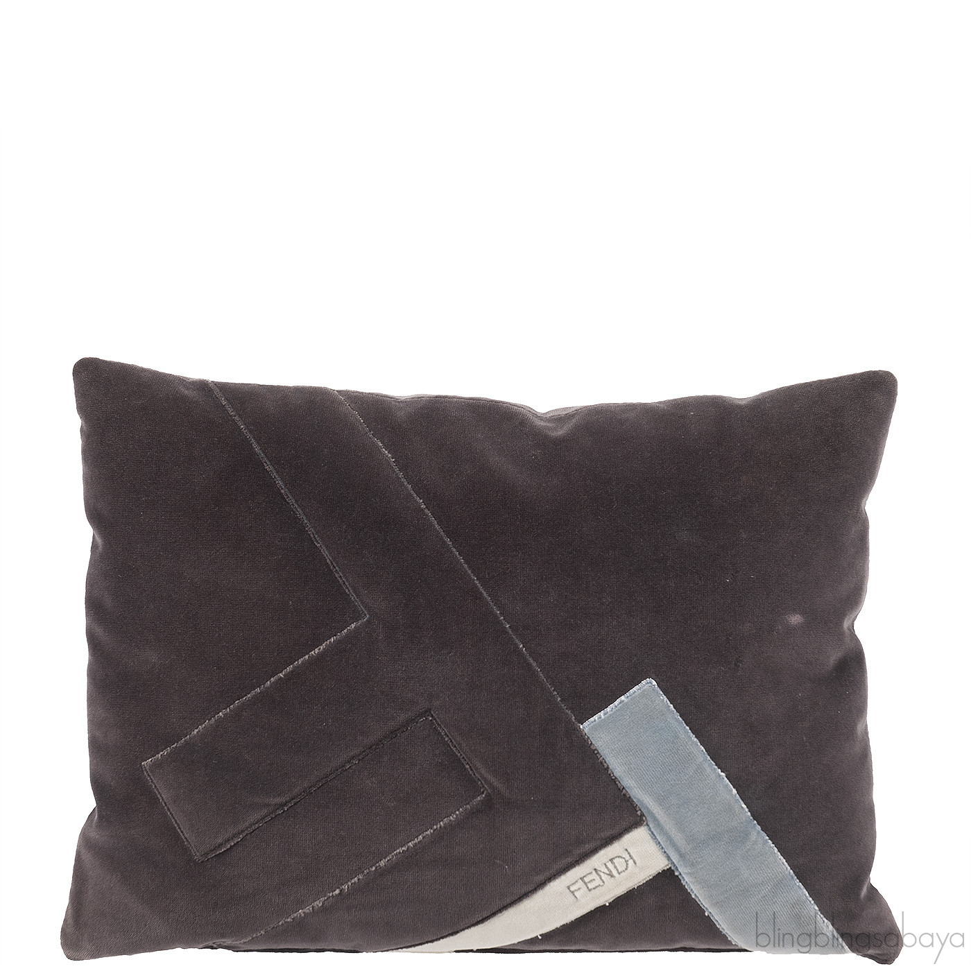 Fendi F Rectangular Grey Velvet Cushion