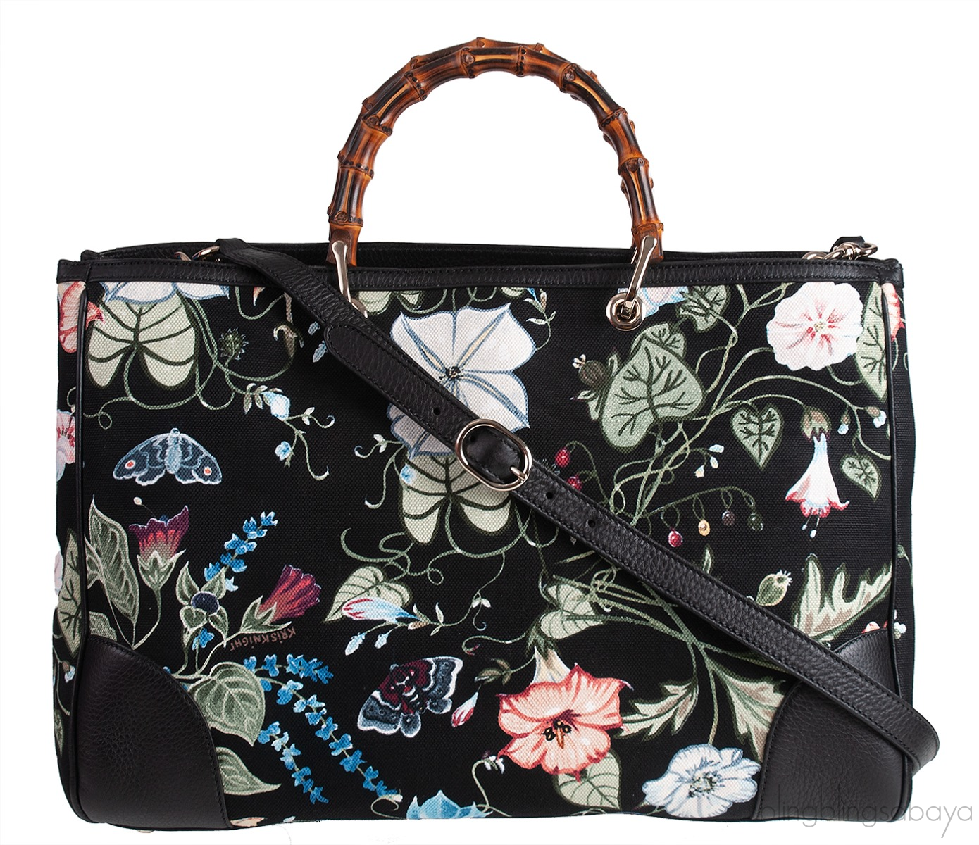 Gucci Black Printed Canvas Bamboo Shopper Tote