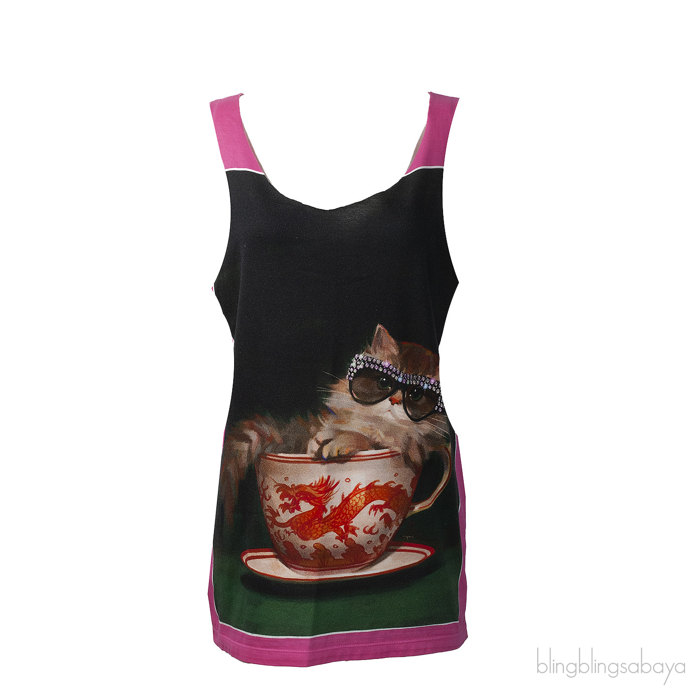 Gucci Pink Ignasi Monreal Cat Teacup Print Tank top