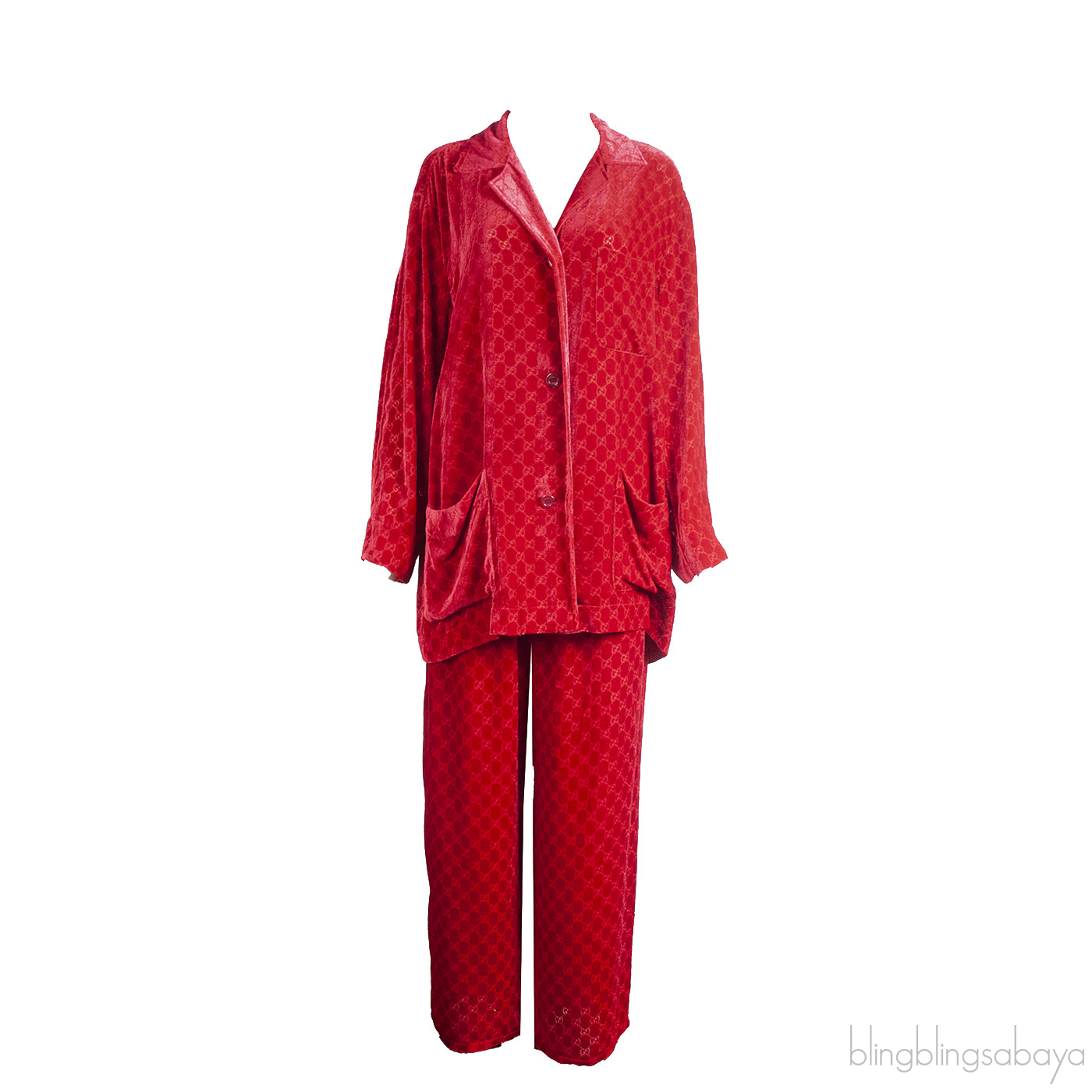 Gucci Red GG Devore Velvet Shirt & Wide Leg Trouser