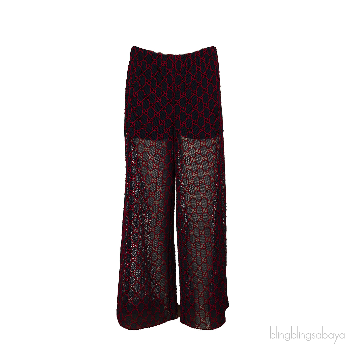 Gucci Navy Blue & Red GG Mesh Wide Leg Sheer Pants