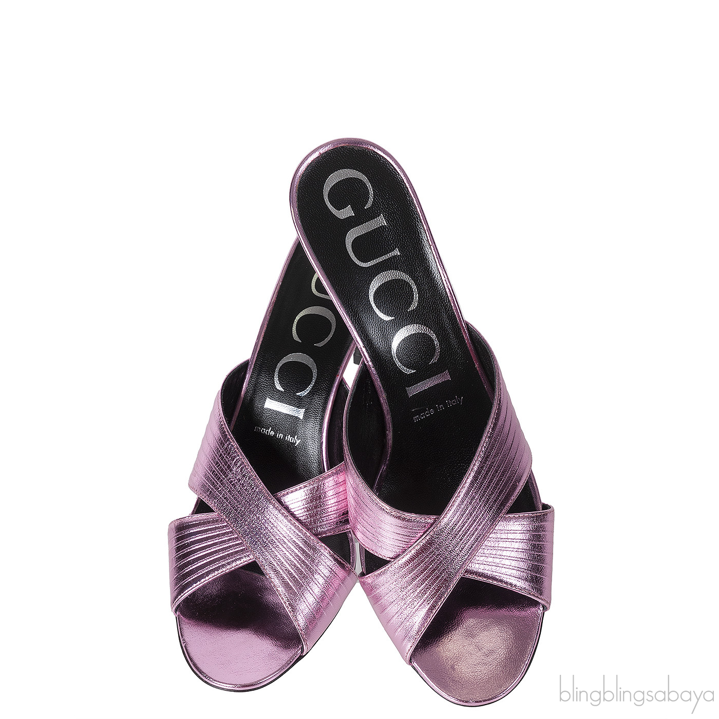 Gucci Criss-cross Metallic Pink Sandals
