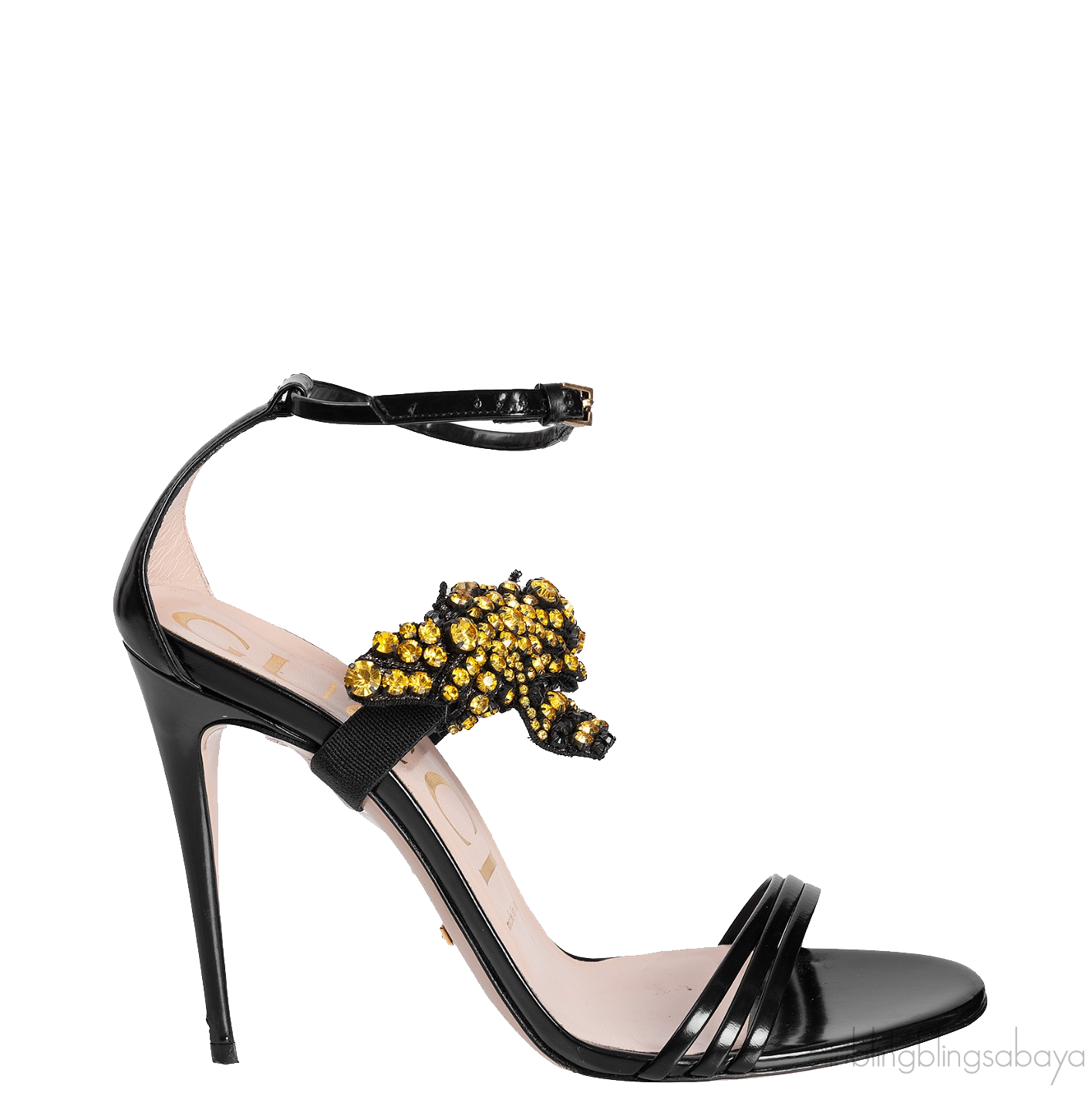 Gucci Black Bee Embellished Crystal Sandals