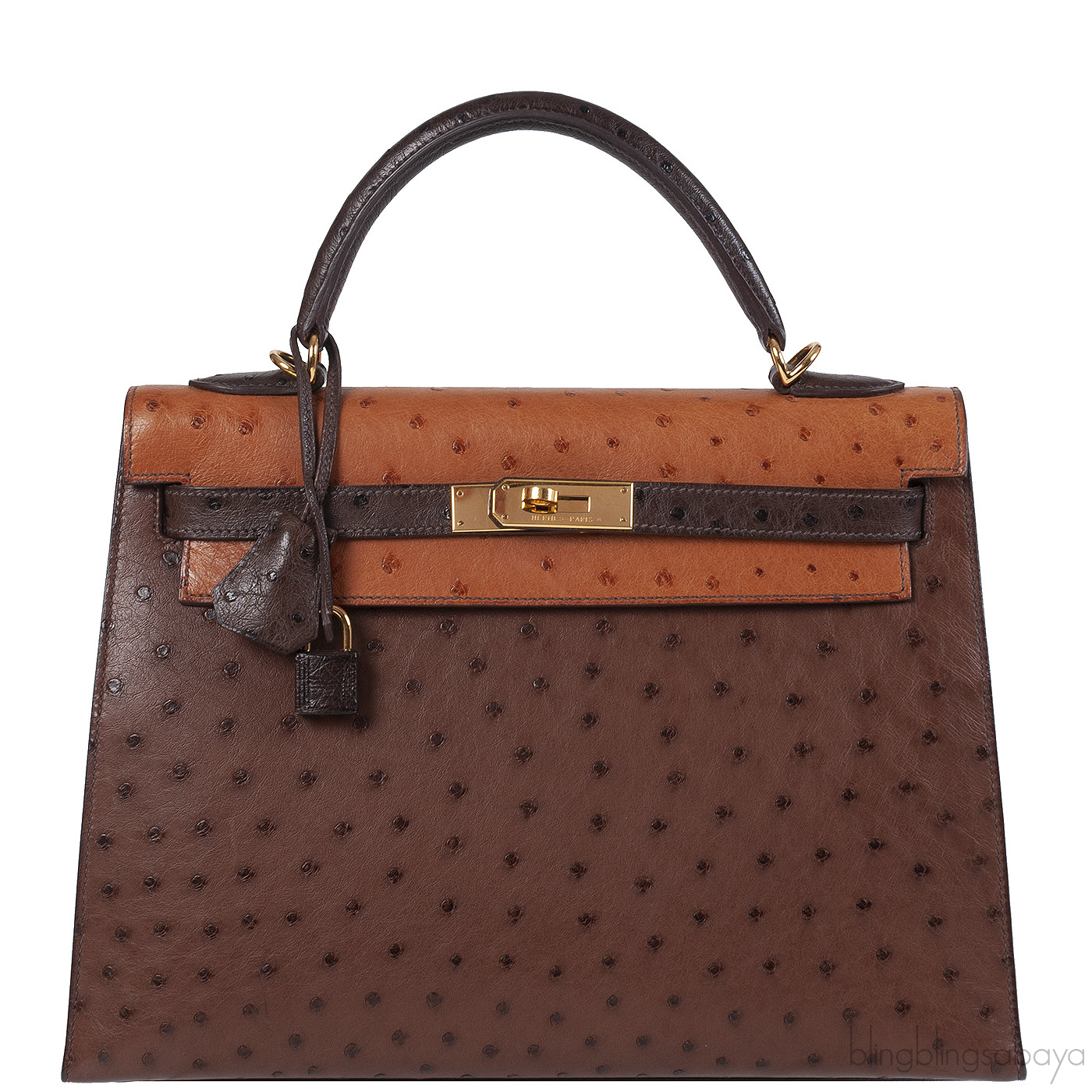 Hermes Kelly 32 Chocolate Natural and Dark Brown Ostrich GHW