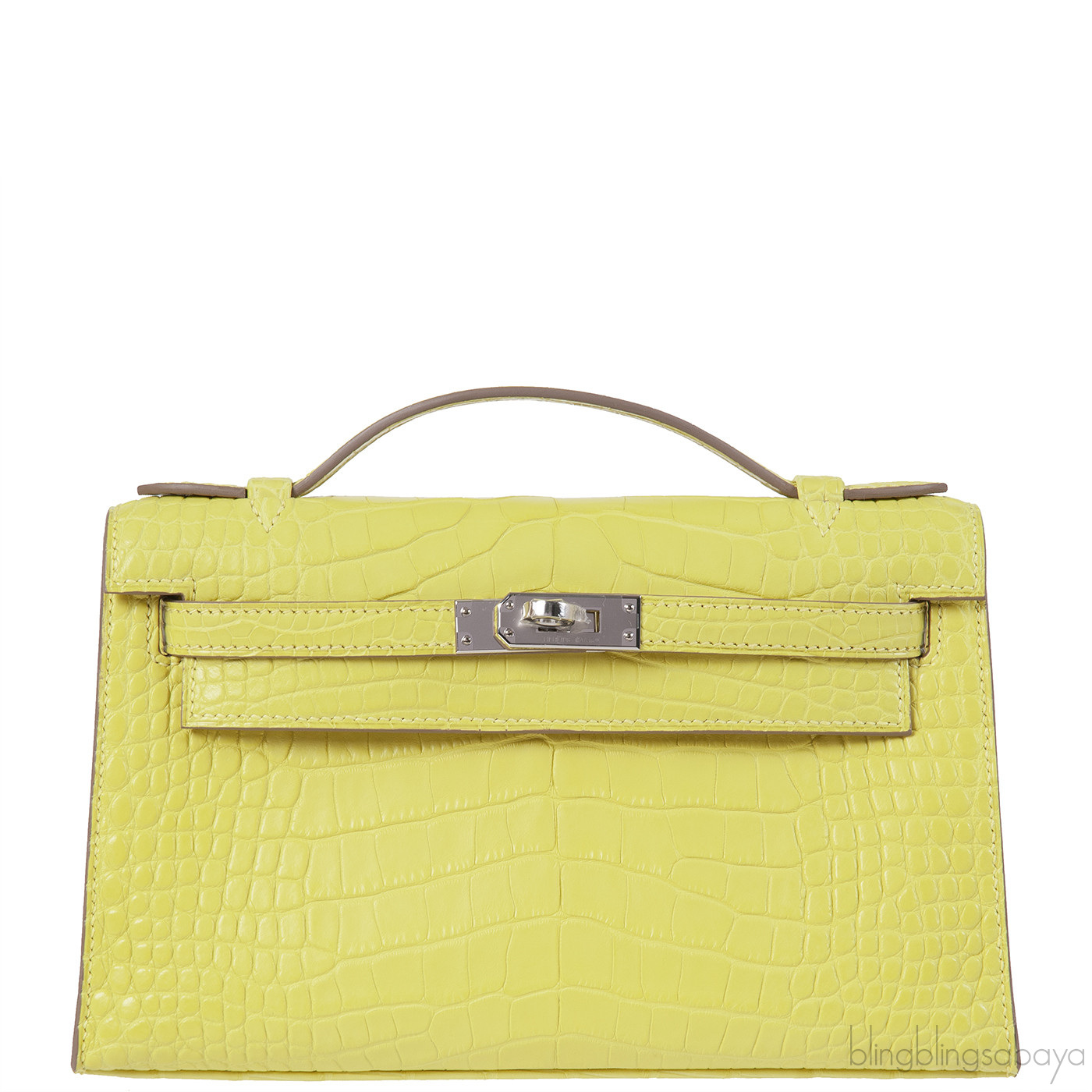 HERMES Kelly Pochette Matte Lime Alligator PHW