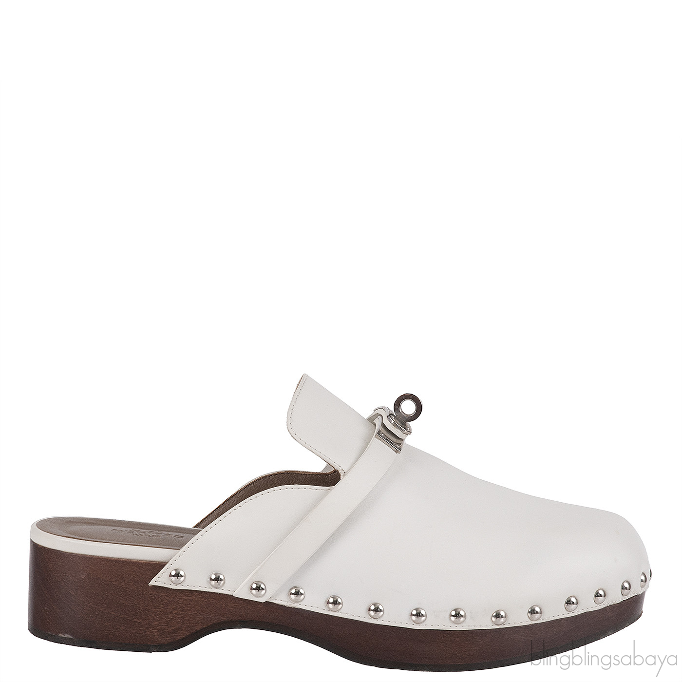 Hermes Carlota White Leather Mules