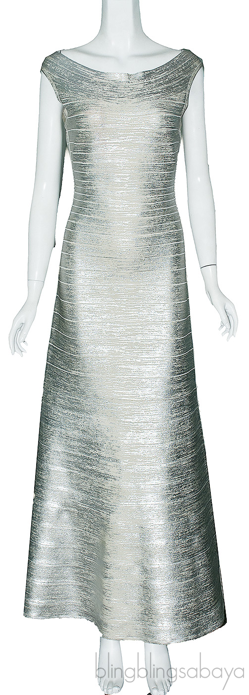 Silver Metallic Bandage Maxi Dress from Herve Leger!