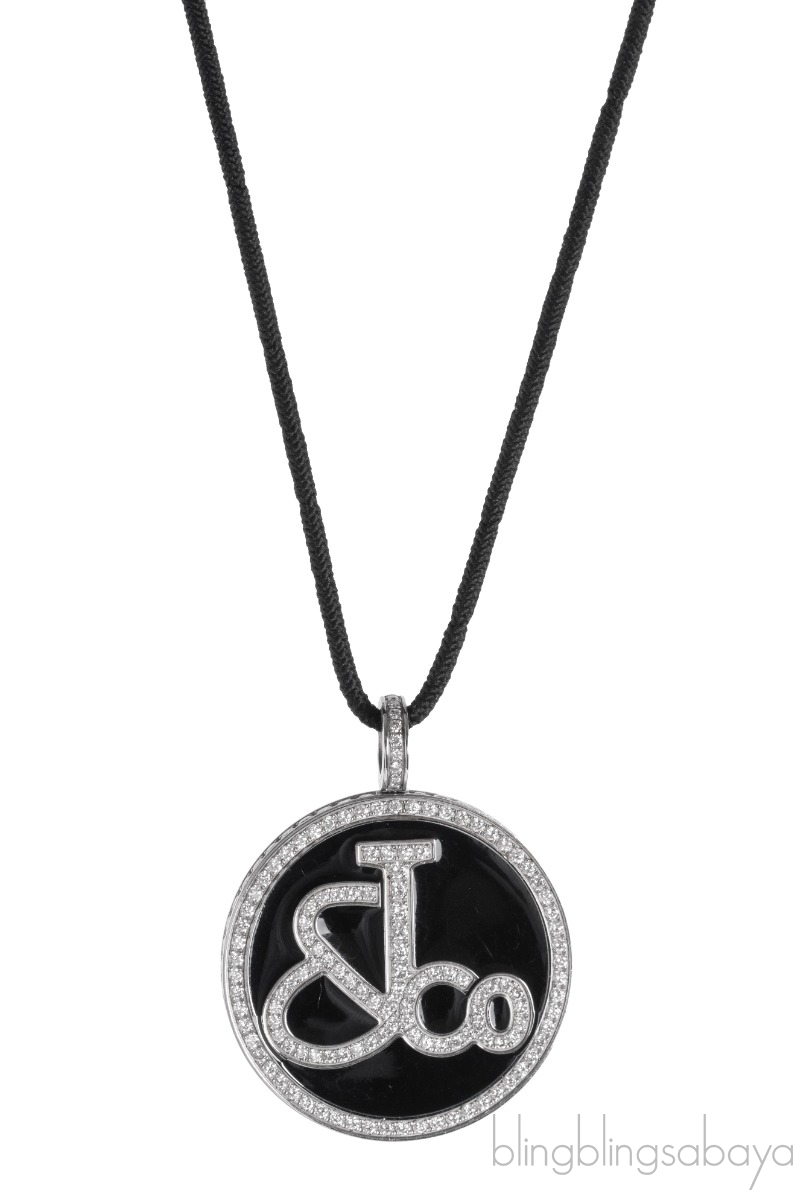 This Diamond Signature Pendant Necklace from Jacob & Co is crafted in 18ct white gold featuring a signature design encrusted with 1.99ct diamonds and has black elastic necklace with stainless steel closure.
