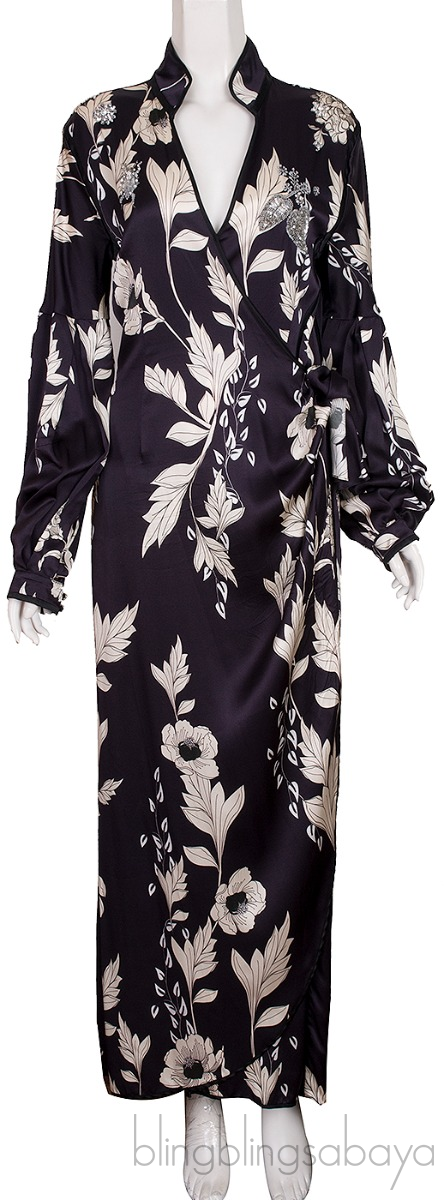 This Ayahuasca Embellished Kimono from Johanna Ortiz is crafted from 100% Silk fabric in dark blue with floral printing all over. This dress features a wrap design wih long sleeves, maxi length and sequin and bead embellishment at front.