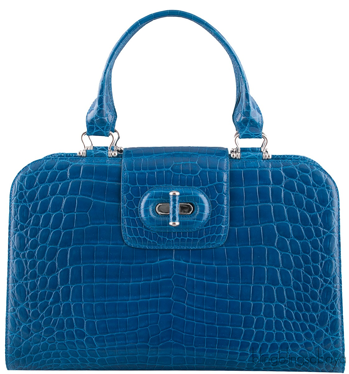 Blue Crocodile Large Top Handle Bag
