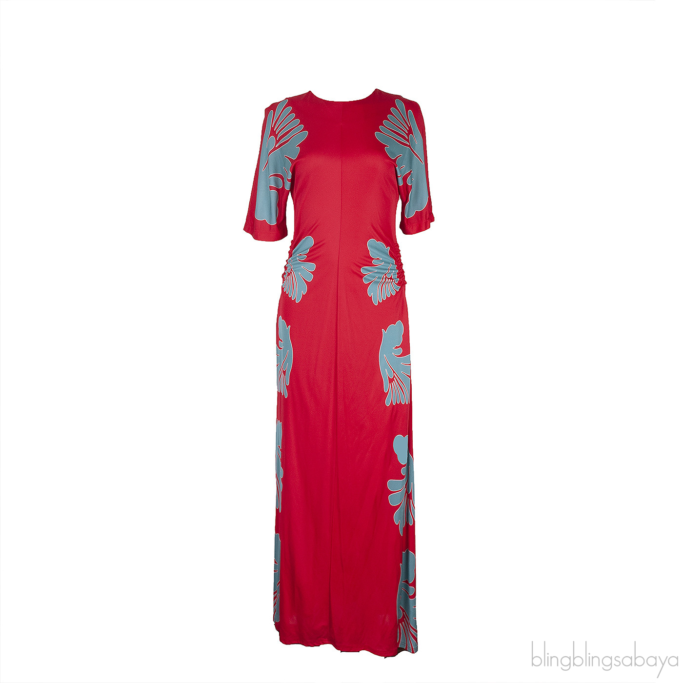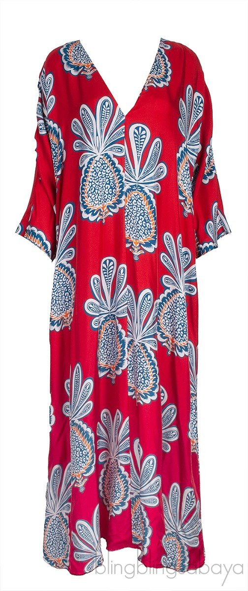 This Red Printed Kaftan Dress from La Double J is crafted in red printed fabric featuring a v-neckline, long sleeves, loose fit, side pockets and maxi length.