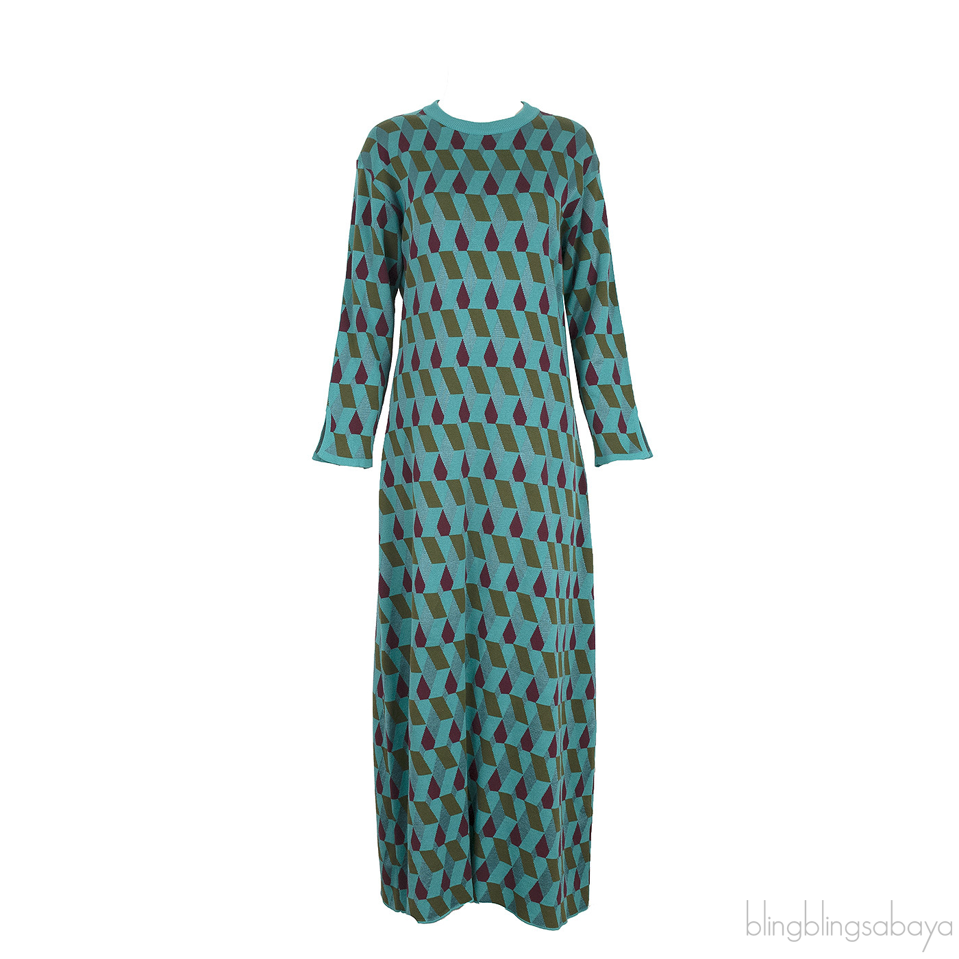 Leisure Jacquard-Knit Cotton Blend Dress from LA DOUBLEJ!The Leisure Jacquard-Knit Cotton Blend Dress from La DoubleJ is crafted from a cotton-blend jacquard knit, offering a relaxed, slightly loose fit. It features a geometric pattern, a round neckline, long sleeves, and a flattering maxi length.