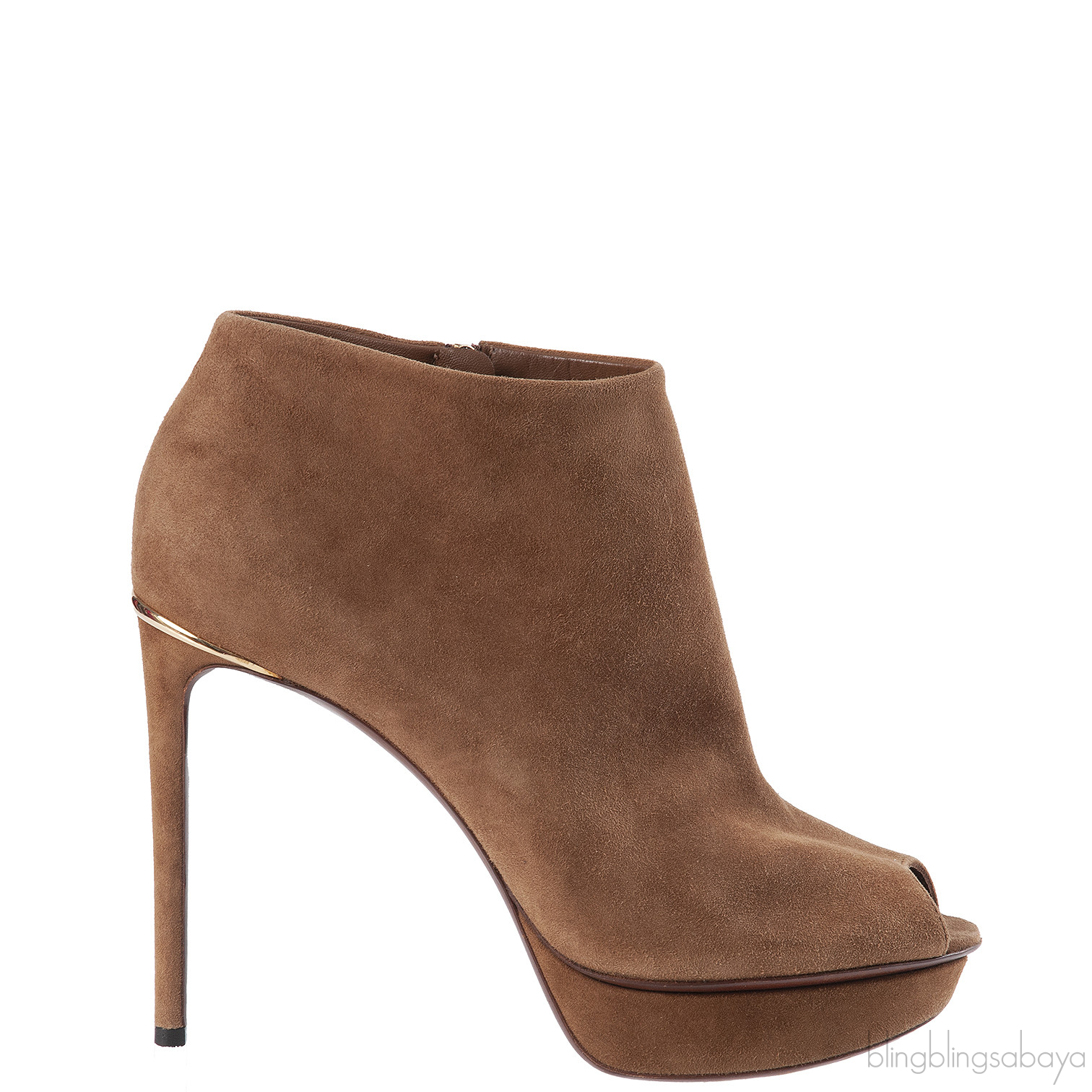 Louis Vuitton Brown Suede Peep Toe Ankle Boots