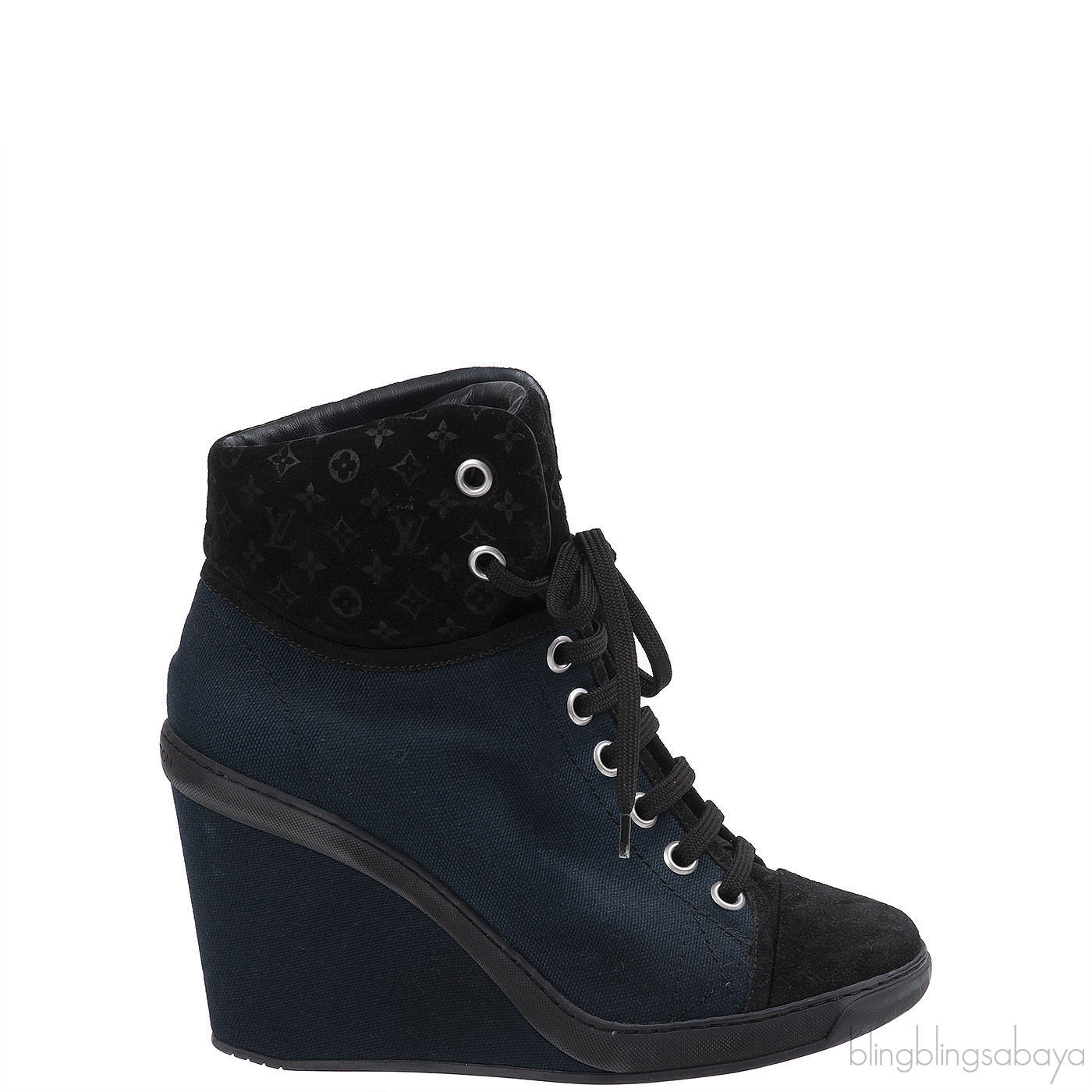 Louis Vuitton Blue & Black Monogram Wedge Boots