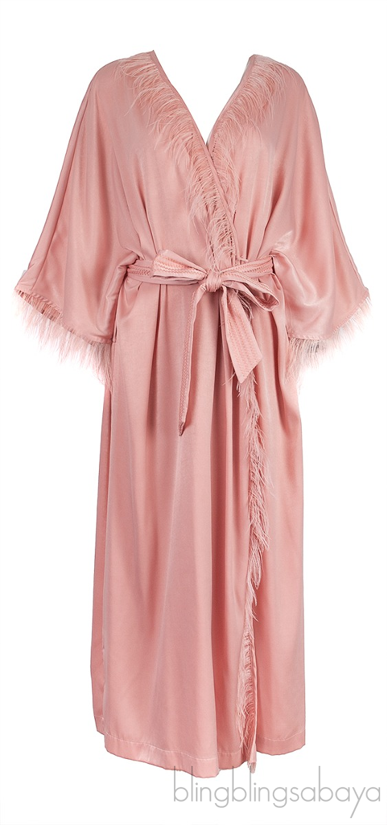 This Laura Feather-trimmed Charmeuse Robe from Love Stories is crafted from 100% Polyester. This robe features an open front, wide sleeves with feather trim and detachable fabric belt with belt loops at waist.