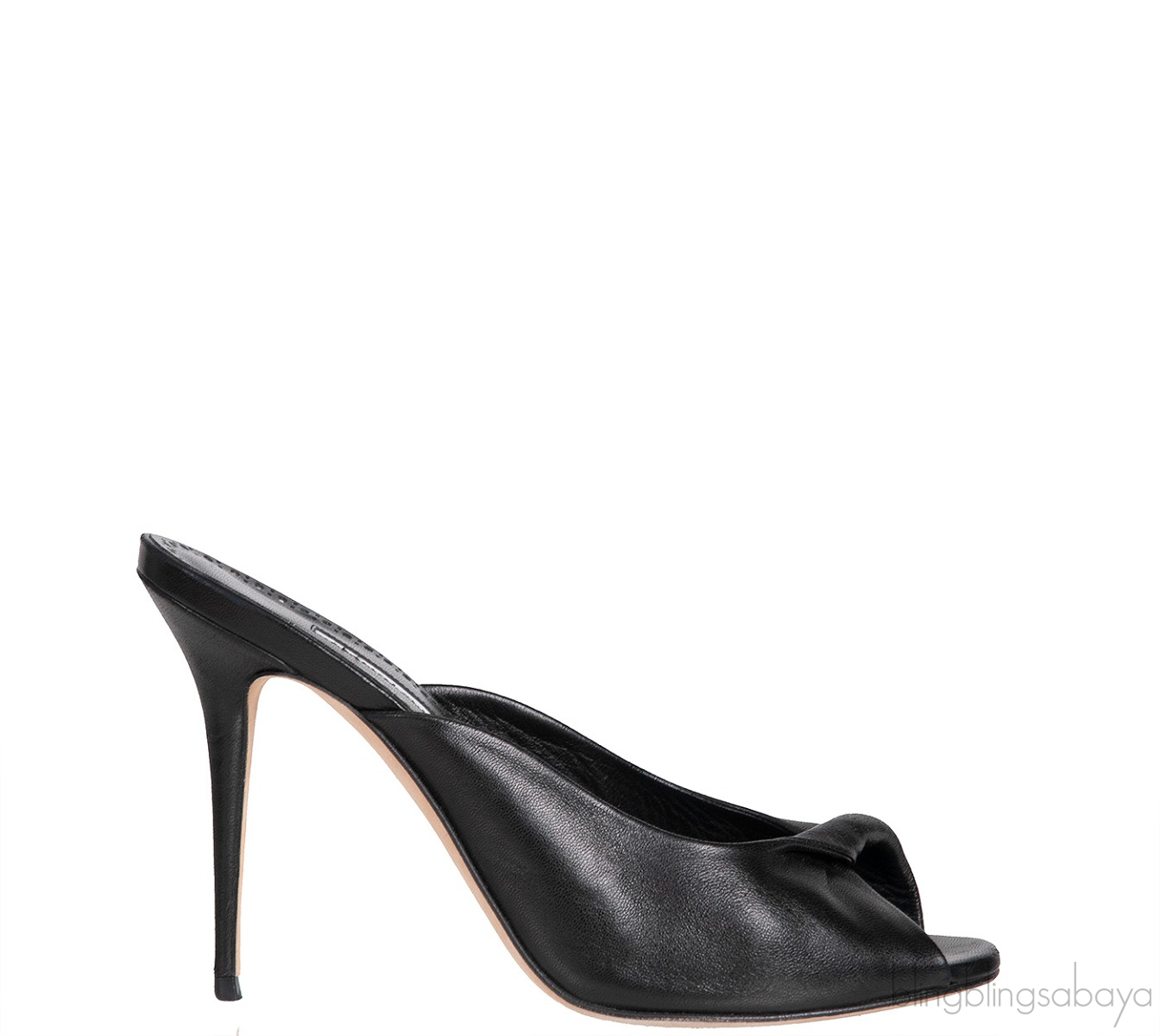 Black Leather Twisted Vamp Peep Toe Mule