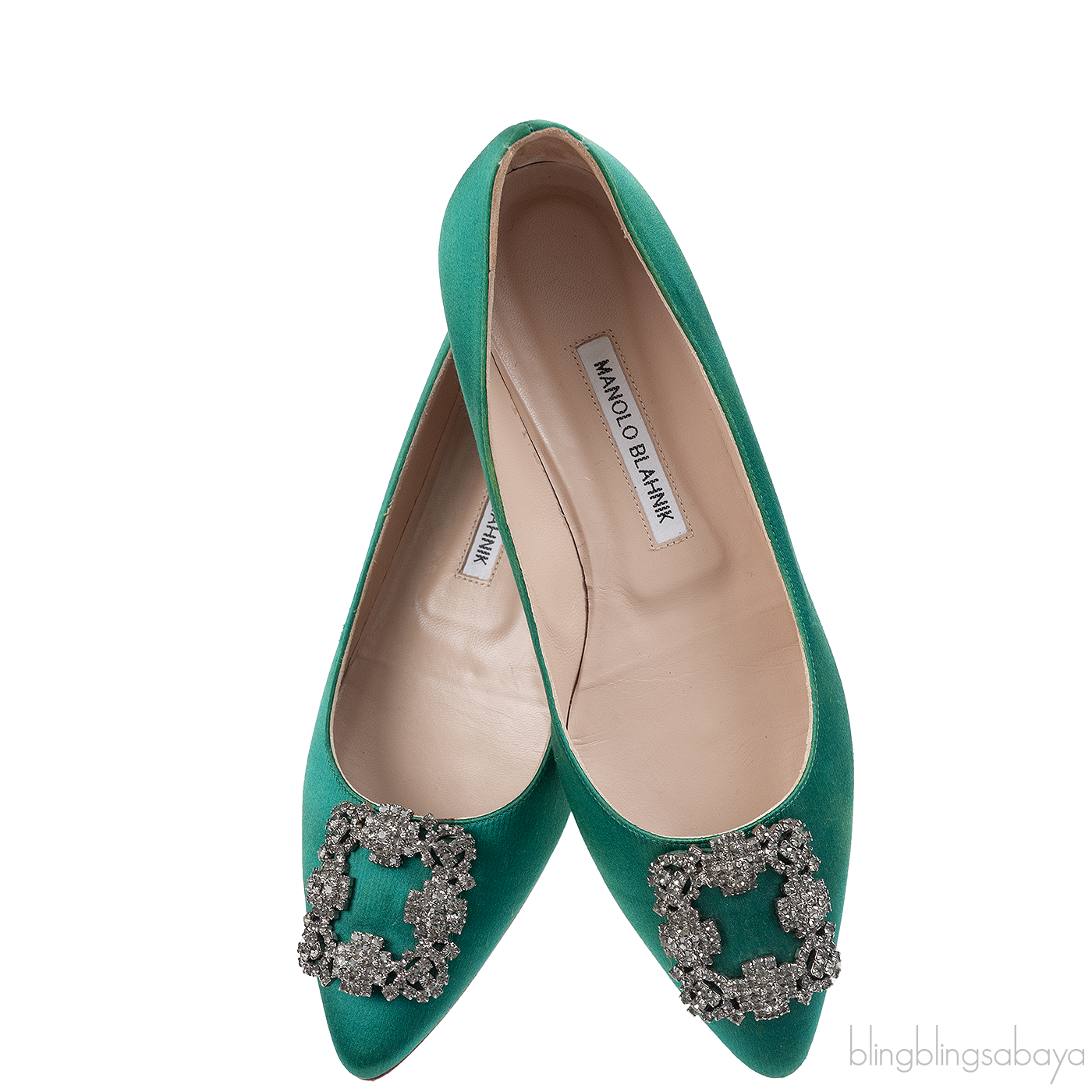 Manolo Blahnik Emerald Green Satin Hangisi Flat Shoes