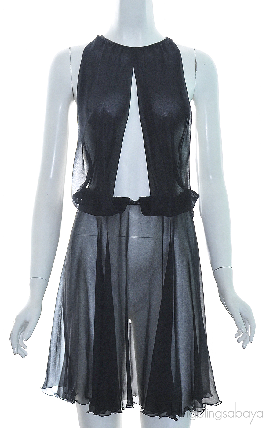 This Black Chiffon Nightdress from Myla is made of 100% Polyester chiffon fabric featuring a round neckline with cut-out design, elastic waistline and ribbon fastening at rear and neckline.