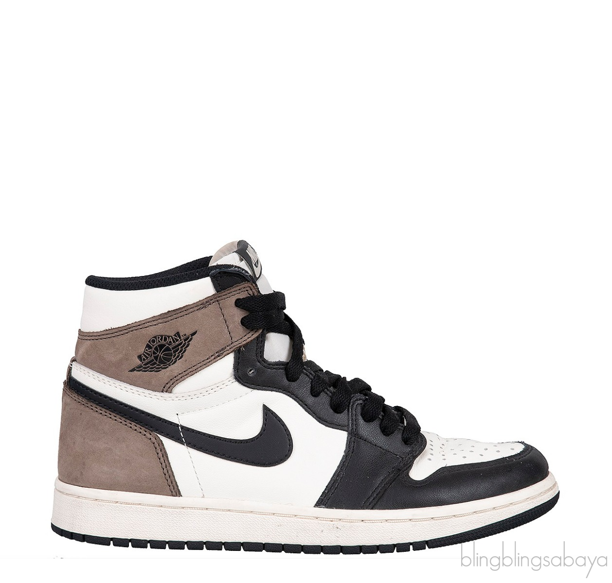 Must-have Nike Air Jordan 1 Retro High Dark Mocha from Nike! These shoes are made of white and black leather iupper, while the heel and collar flap are Dark Mocha nubuck. The Nike Air branding on the nylon tongue, the Jordan Wings emblem, and the iconic black leather swoosh are all nods to the original 1985 Jordan 1.